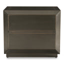 - Metal hand-cladded with details in the join lines. Constructed of a brass metal sheet & MDF