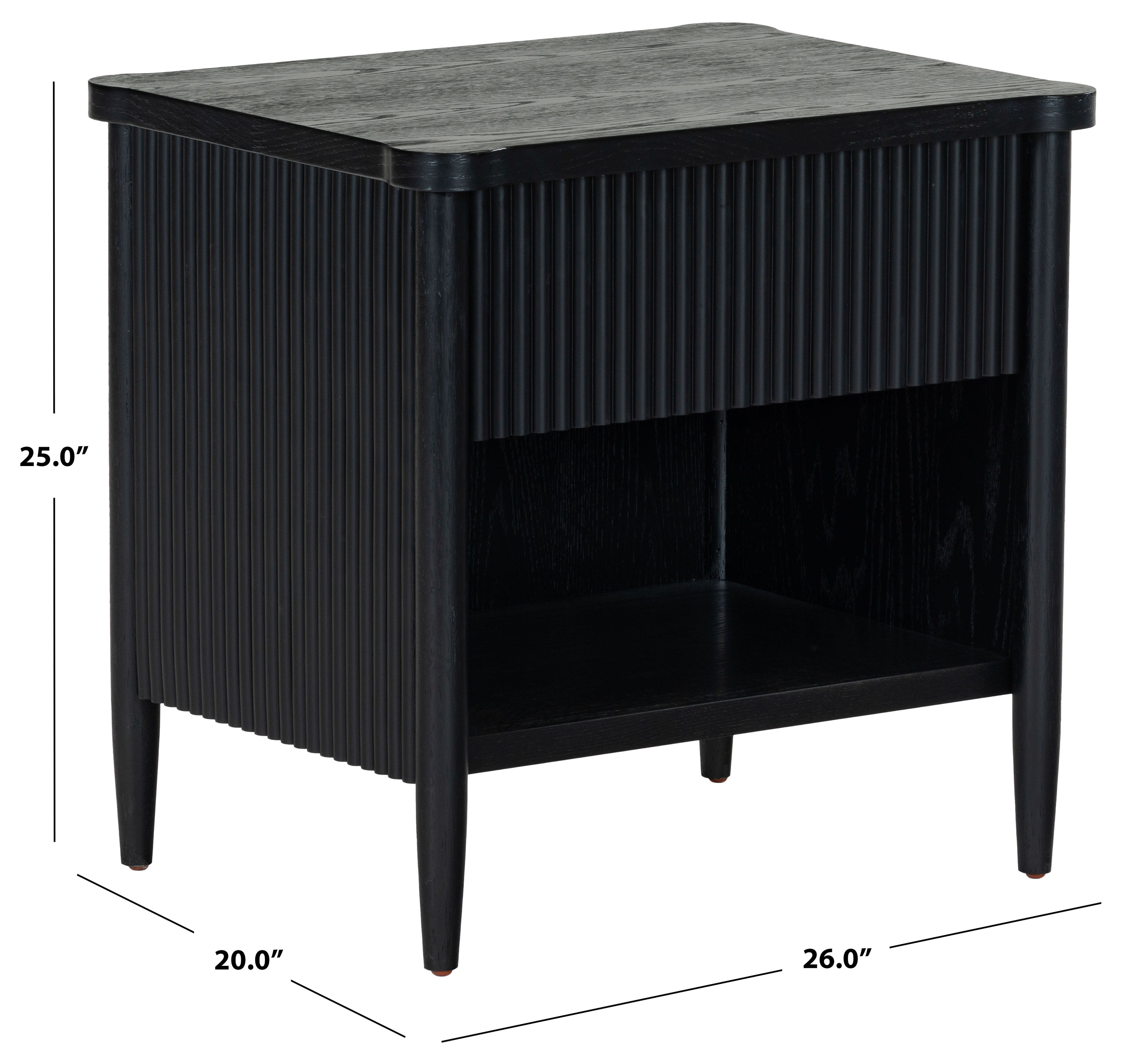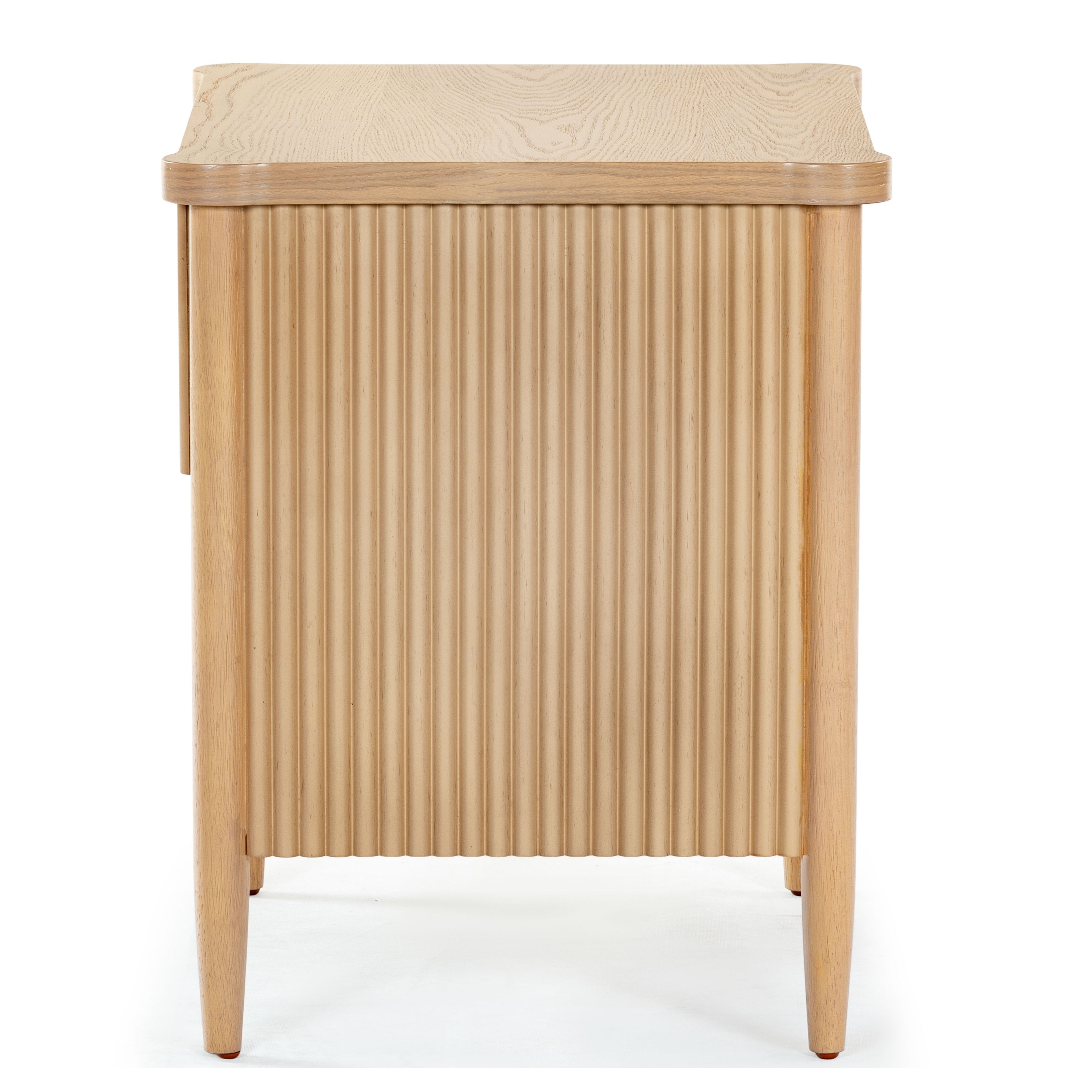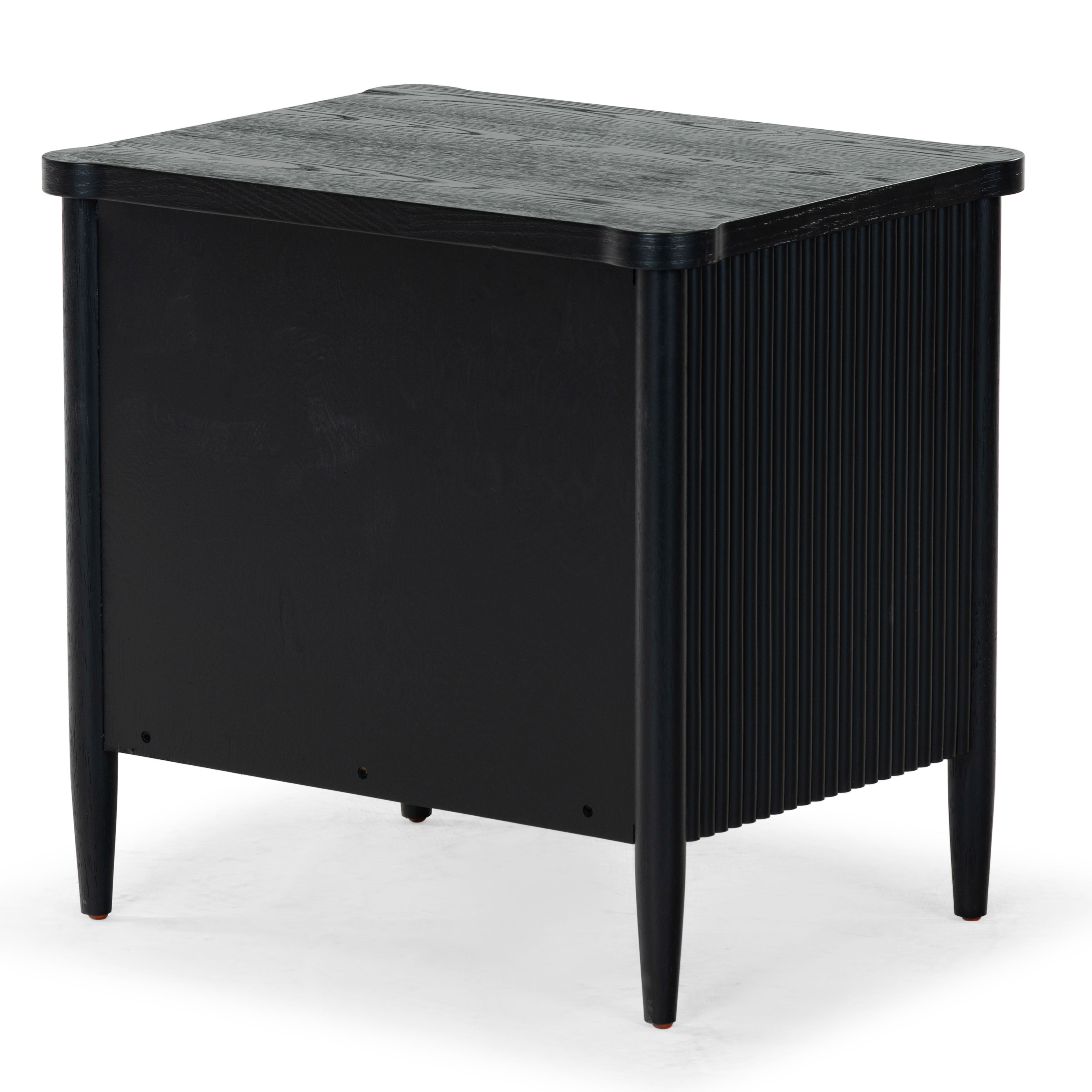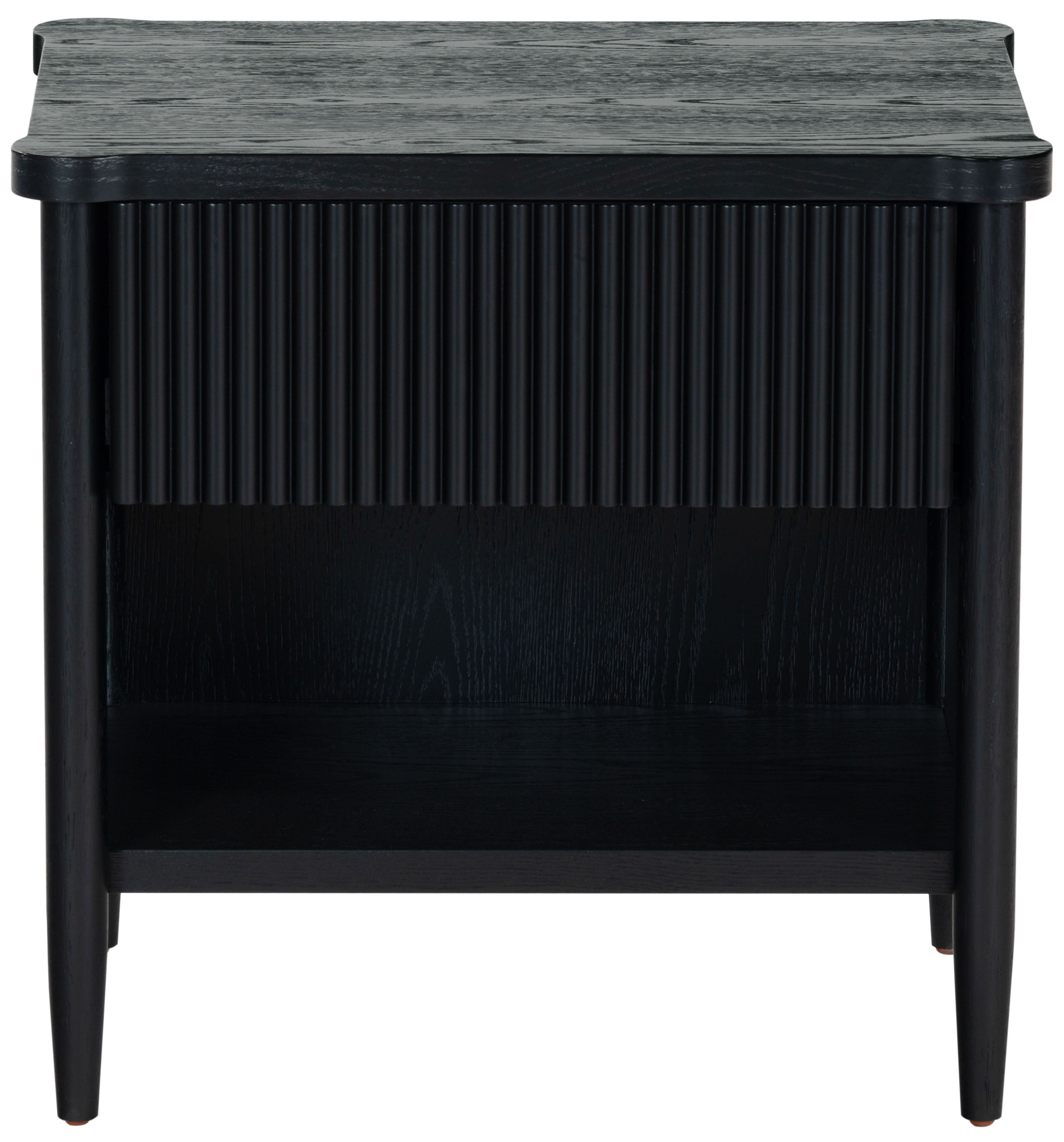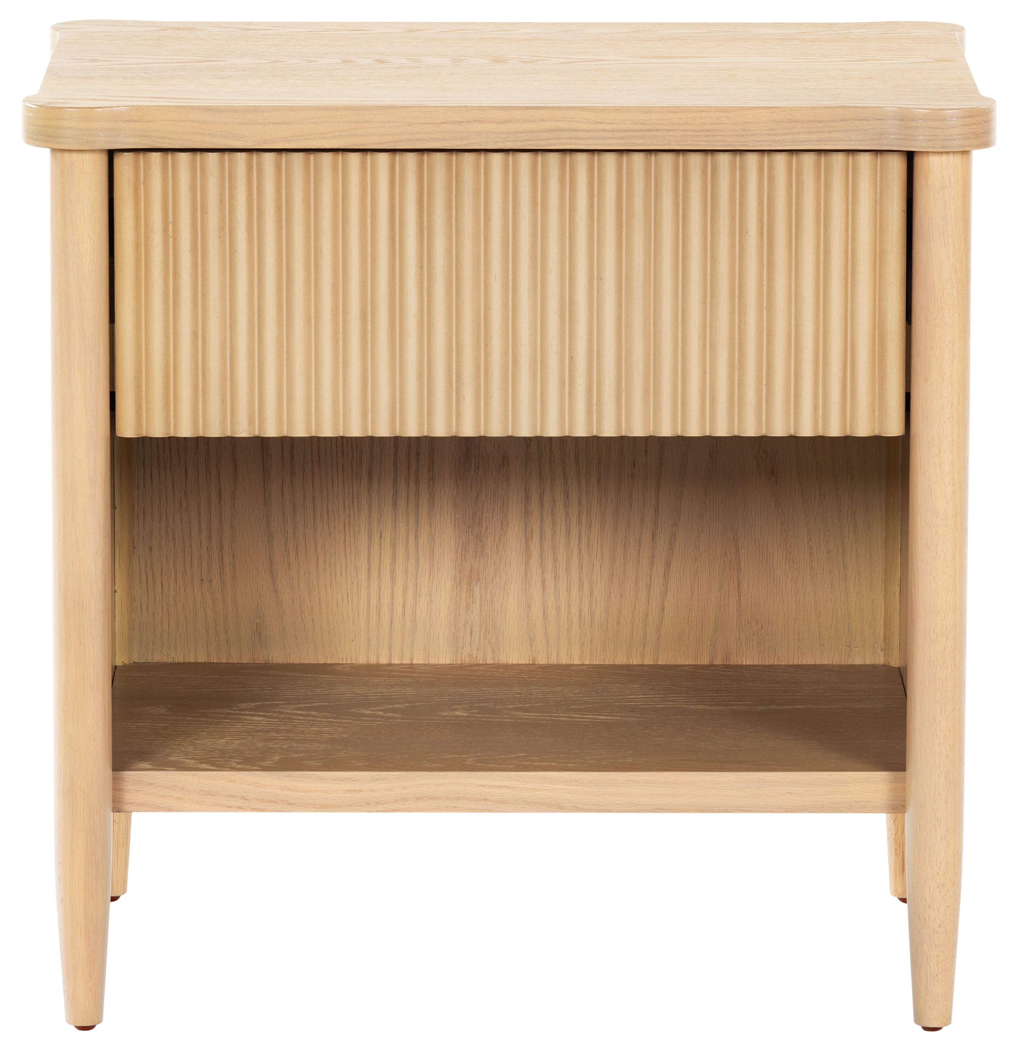 - Crafted from wood and featuring polyester resin drawer fronts, the Shelbie nightstand provides a durable and stylish storage solution for your bedside essentials. The reeded design adds an element of texture and interest, turning an ordinary nightstand into a statement piece.