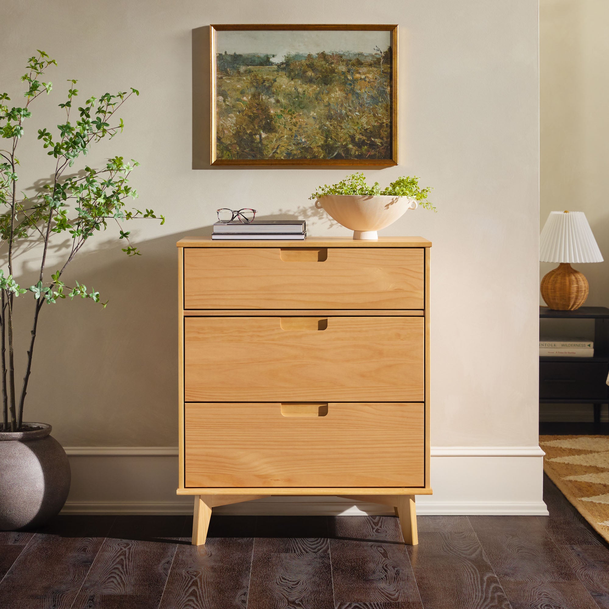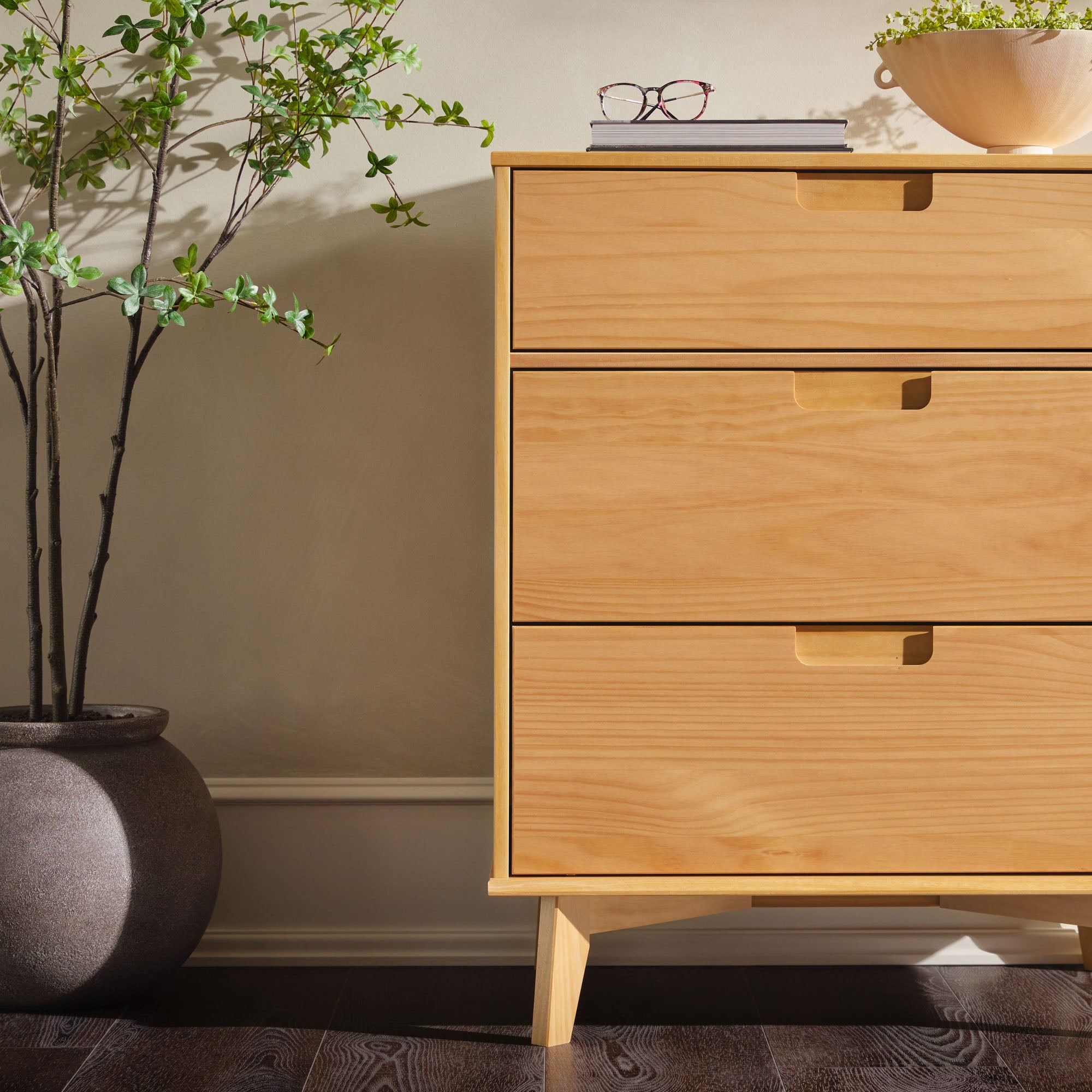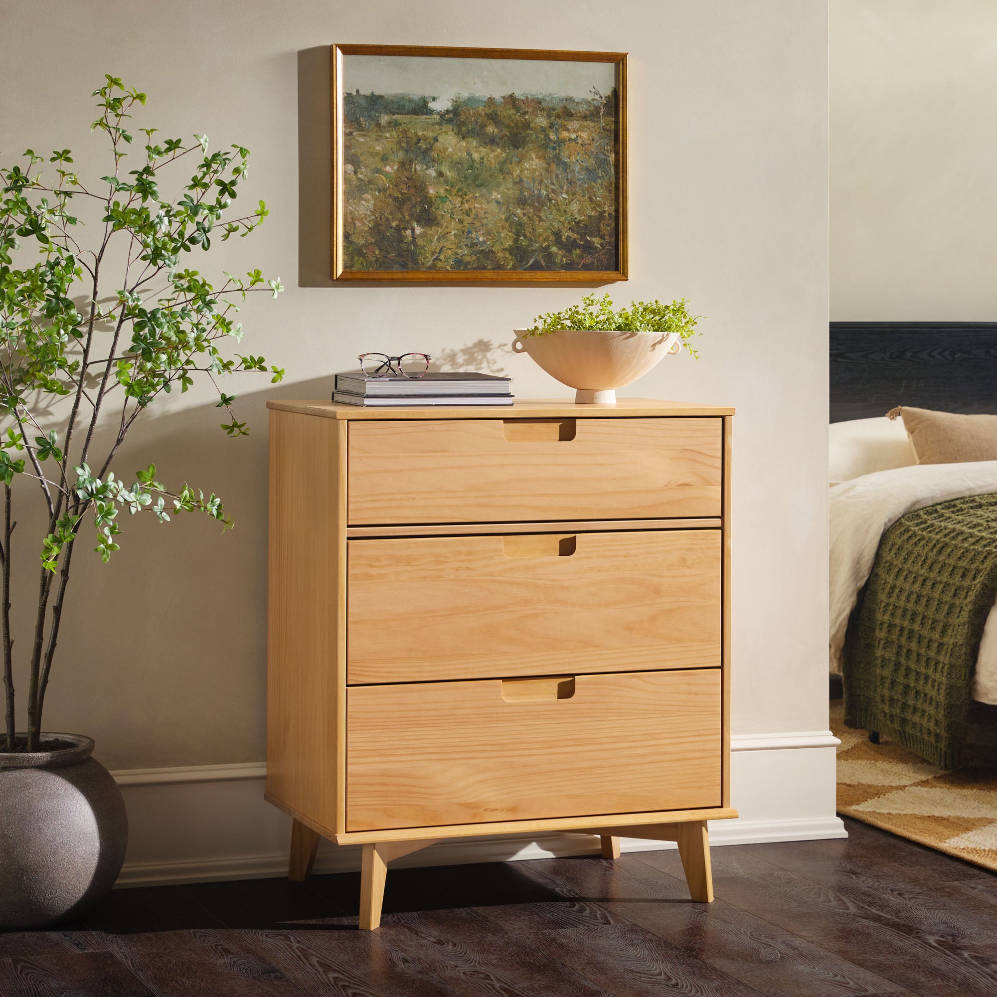 - Color: BR3DSLDRNP-T 3-Drawer Groove Handle Solid Wood Dresser - Natural Pine