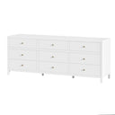 - Nine soft-close drawers glide on metal slides with a smooth .75 extension for easy access to storage