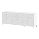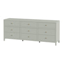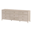 The Butler Specialty Company Nora 84 in. Wide 9 Drawer Dresser brings elevated sophistication and generous storage to both spacious bedrooms and hospitality settings. With its expansive frame and clean, architectural lines, Nora is the perfect statement piece—balancing refined craftsmanship with minimalist appeal. The warm wood finish, paired with subtle customizable hardware and a fully finished back, makes this dresser equally striking whether placed against a wall or floated in an open layout. Whether anchoring a master suite or furnishing a boutique hotel room, Nora delivers timeless beauty and everyday functionality.
