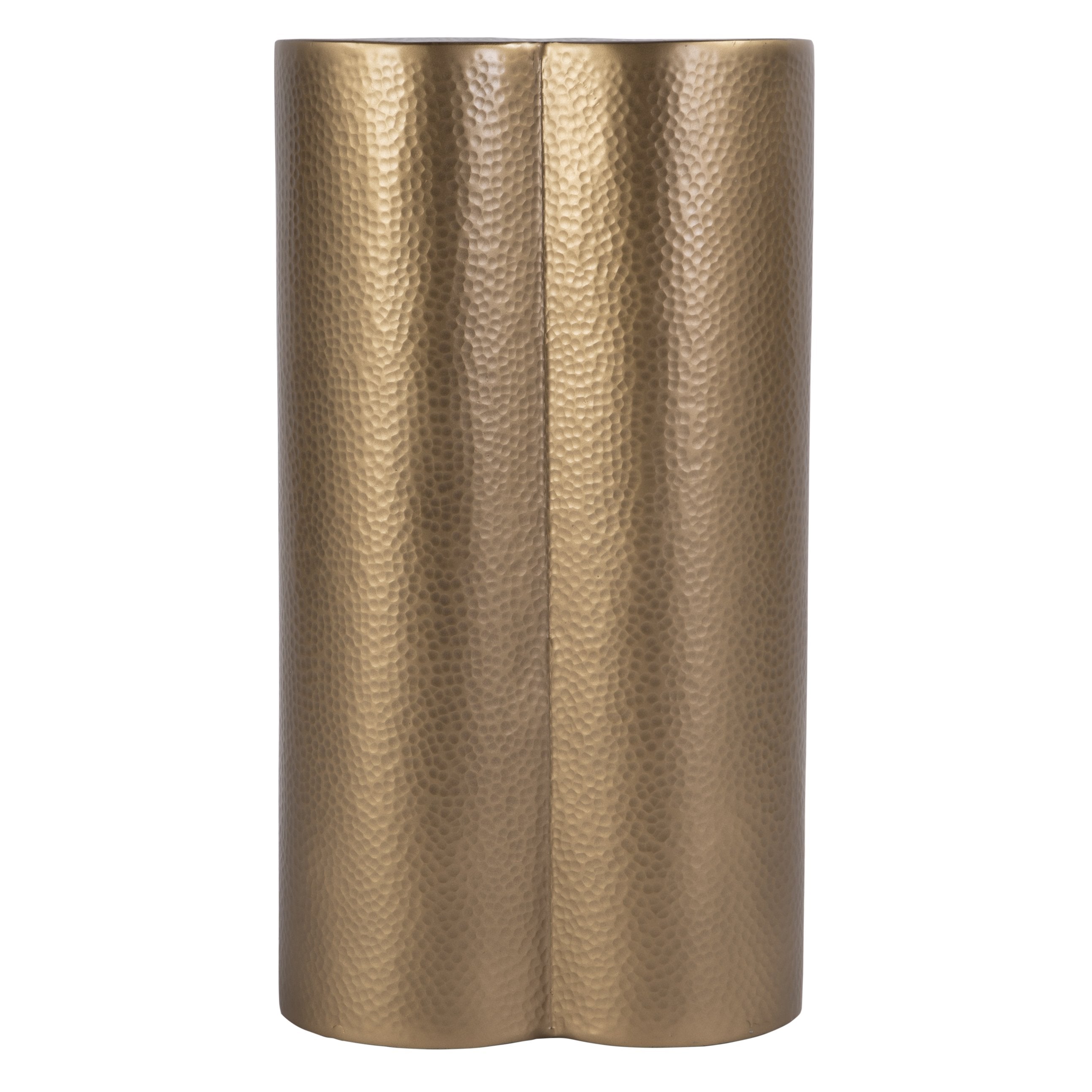 - Product Features (Construction Details): Construction Details: This 12.25" wide accent table is made from 100% aluminum, ensuring both durability and a lightweight design. The natural finish highlights its textured surface, giving it an artisanal, rustic feel that complements a variety of decor styles. The felt feet protectors prevent scratches and damage to your floors, making it a practical option for any space. Its clover-like shape not only adds a unique aesthetic but also maximizes surface area for decorative displays or functional use. Delivered fully assembled, this piece is ready to enhance your home from the moment it arrives.