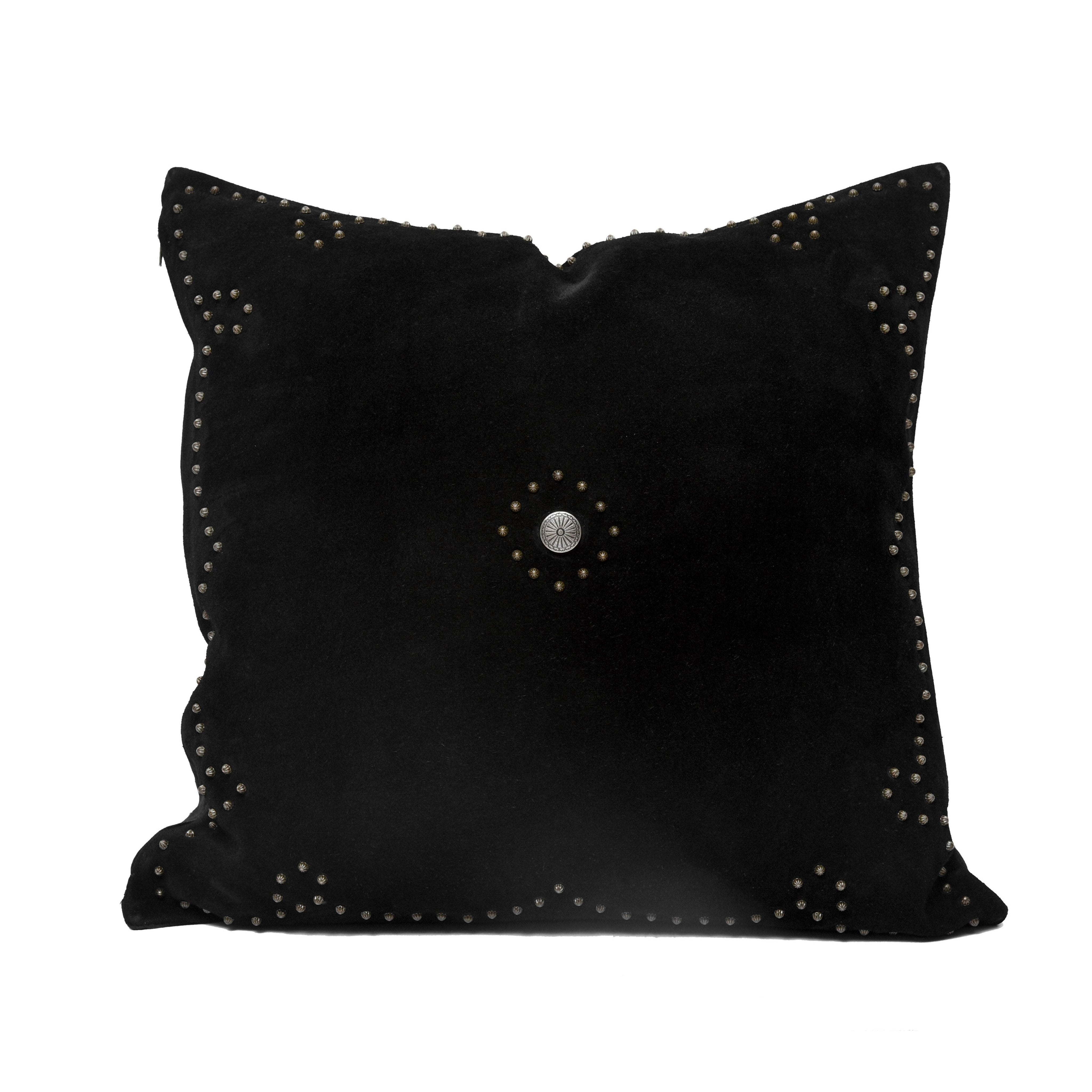 Embodying Western sophistication in every detail, this genuine suede pillow showcases a lone silver concho in the middle, enveloped by an elegant silver-studded border. Available in black, gray, navy, and tobacco, this accent pillow brings a luxurious, rustic touch to any room.