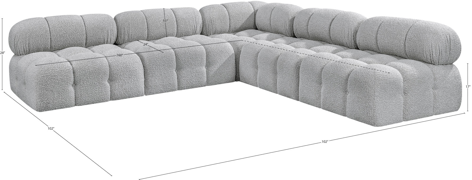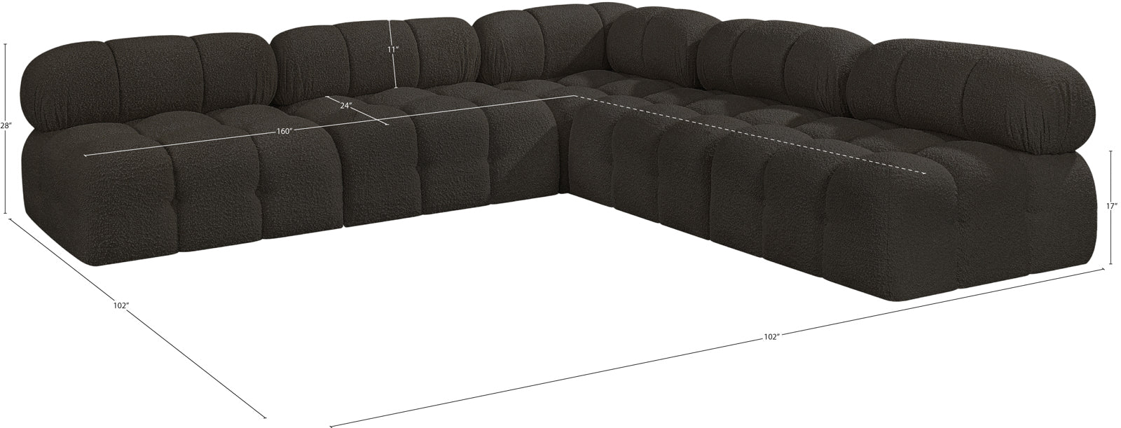 - Dimensions: 611Black-Sec5C Ames Black Boucle Fabric Modular Sectional - 102" W x 102" D x 28" H