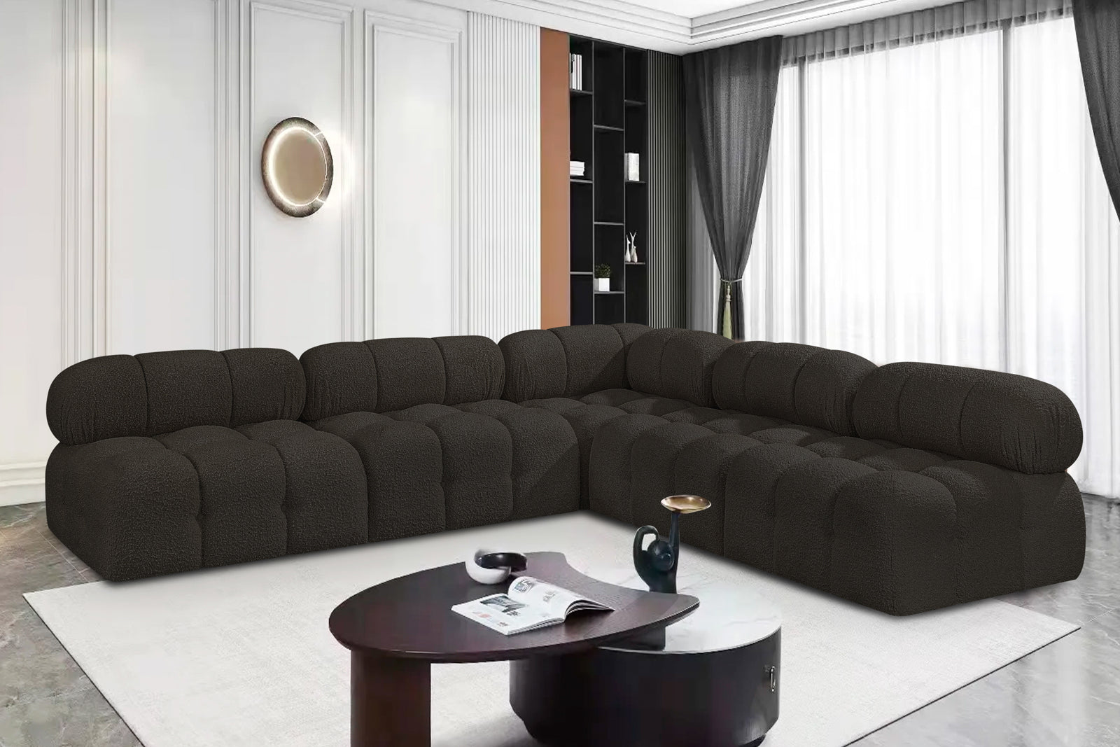- Color: 611Black-Sec5C Ames Black Boucle Fabric Modular Sectional - Black Boucle Fabric