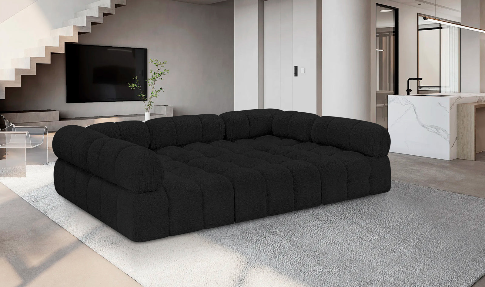 - Color: 611Black-Sec6C Ames Black Boucle Fabric Modular Sectional - Black Boucle Fabric