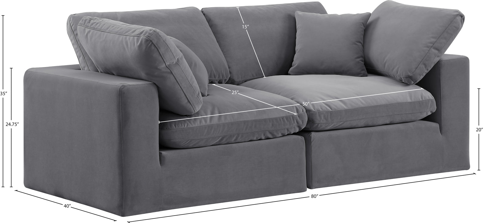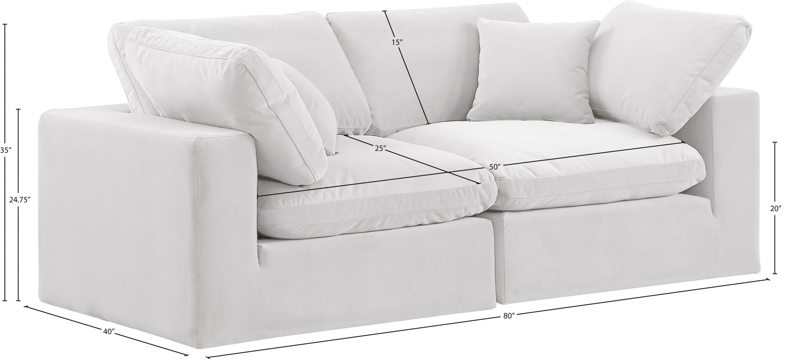 - Dimensions: 187Beige-S80 Comfy Beige Linen Textured Fabric Modular Sofa - 80" W x 40" D x 34.5" H