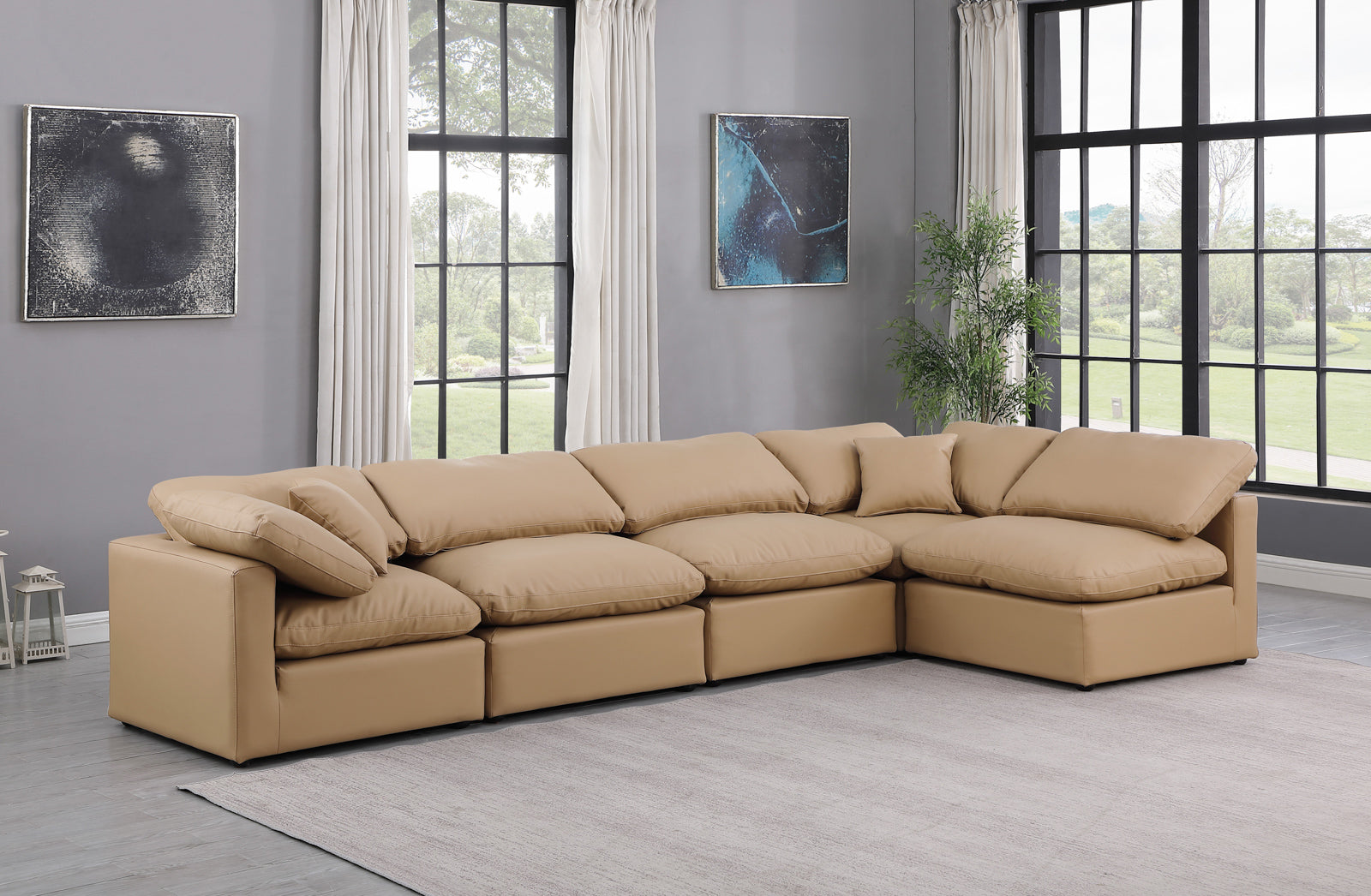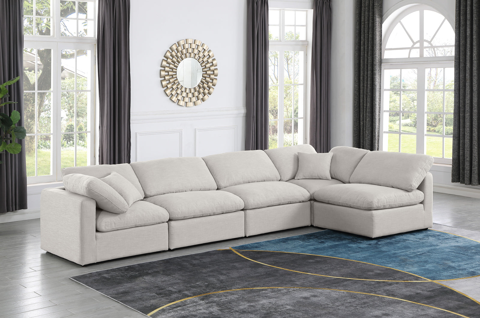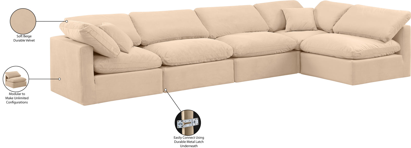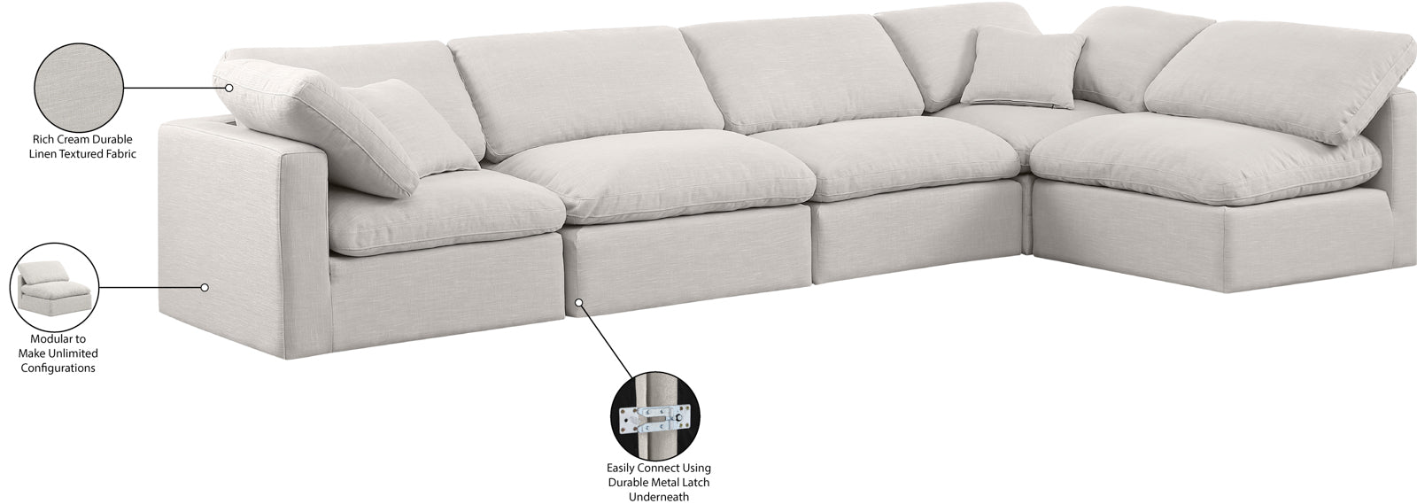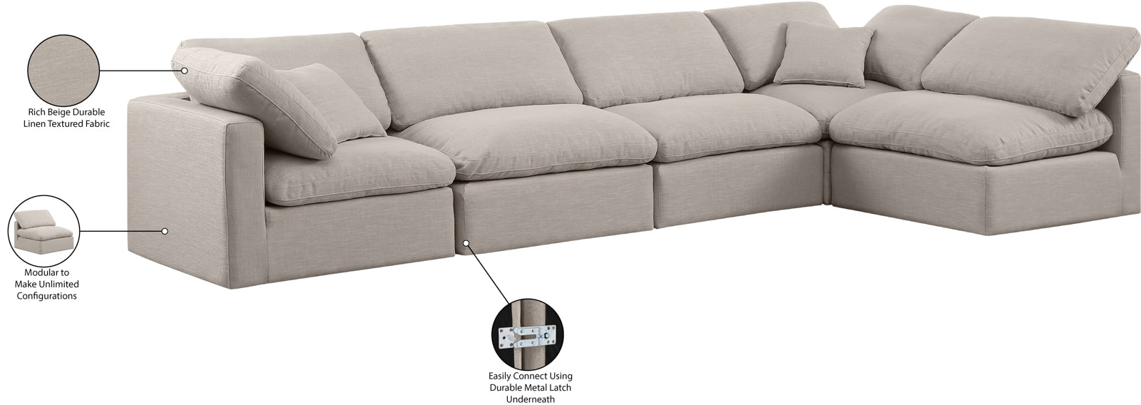 - Color: 141Beige-Sec5D Indulge Beige Linen Textured Fabric Modular Sectional - Beige Linen Textured Fabric