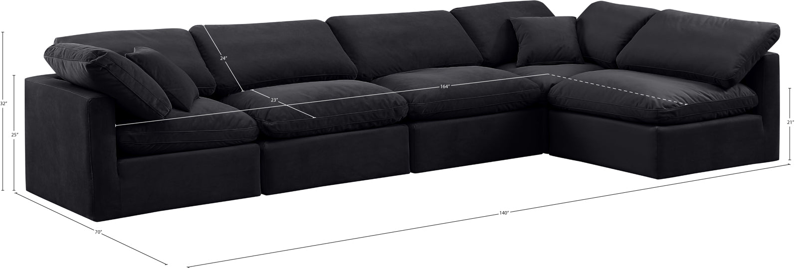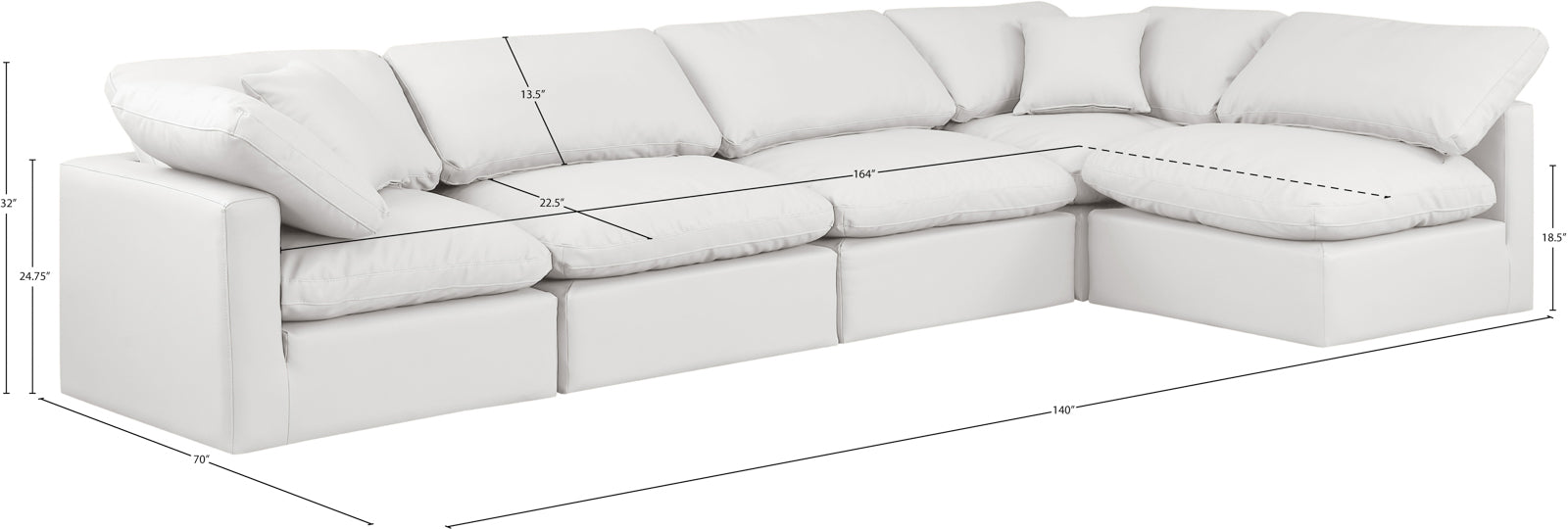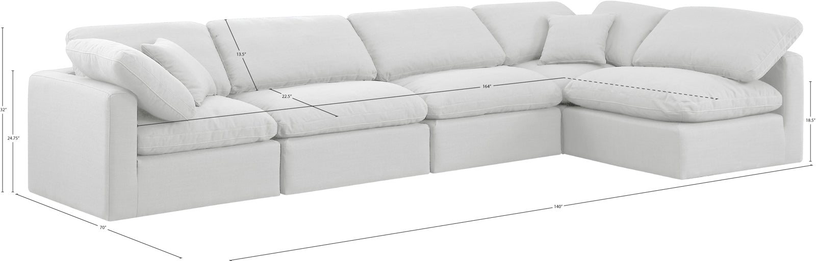 - Dimensions: 141Beige-Sec5D Indulge Beige Linen Textured Fabric Modular Sectional - 140" W x 70" D x 32" H