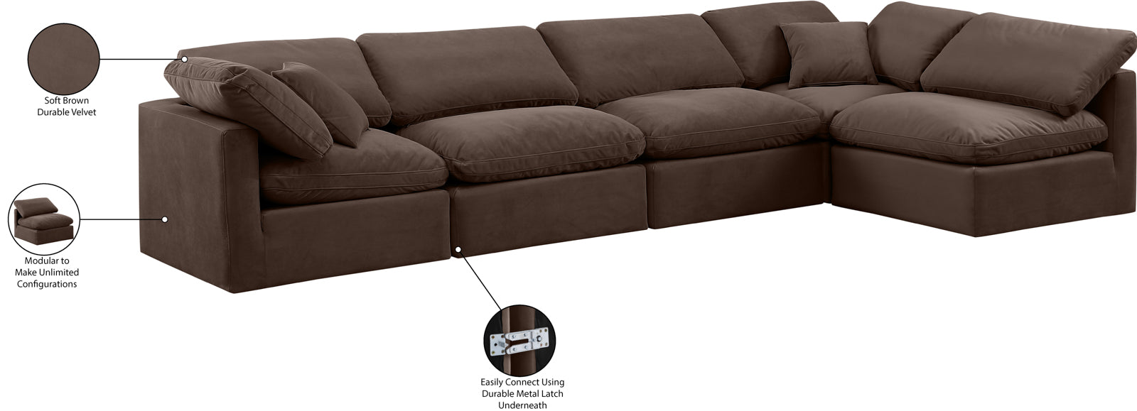- Material: 141Beige-Sec5D Indulge Beige Linen Textured Fabric Modular Sectional - Beige Linen Textured Fabric / Down / Manufactured Wood / Foam with Espresso
