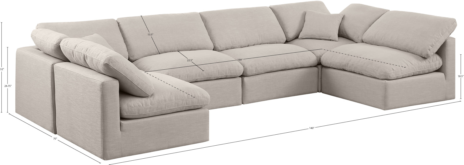 - Dimensions: 141Beige-Sec6D Indulge Beige Linen Textured Fabric Modular Sectional - 140" W x 70" D x 32" H