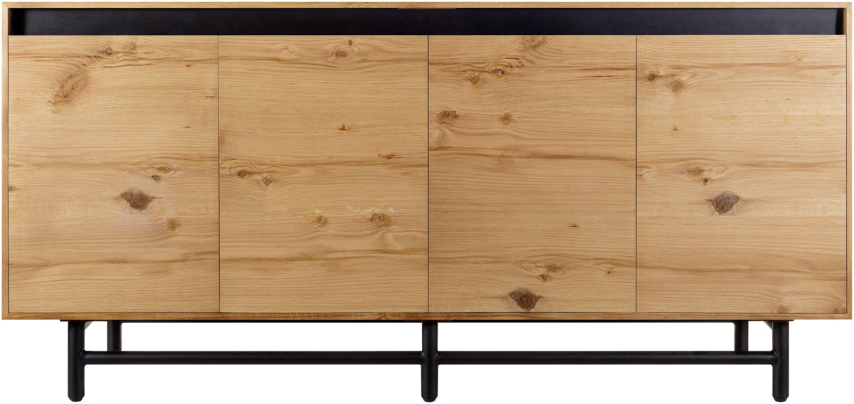 - Material: Molander MLDR-001 30"H x 64"W x 18"D Sideboard - Top: Wood Veneer, Steel; Base: Steel