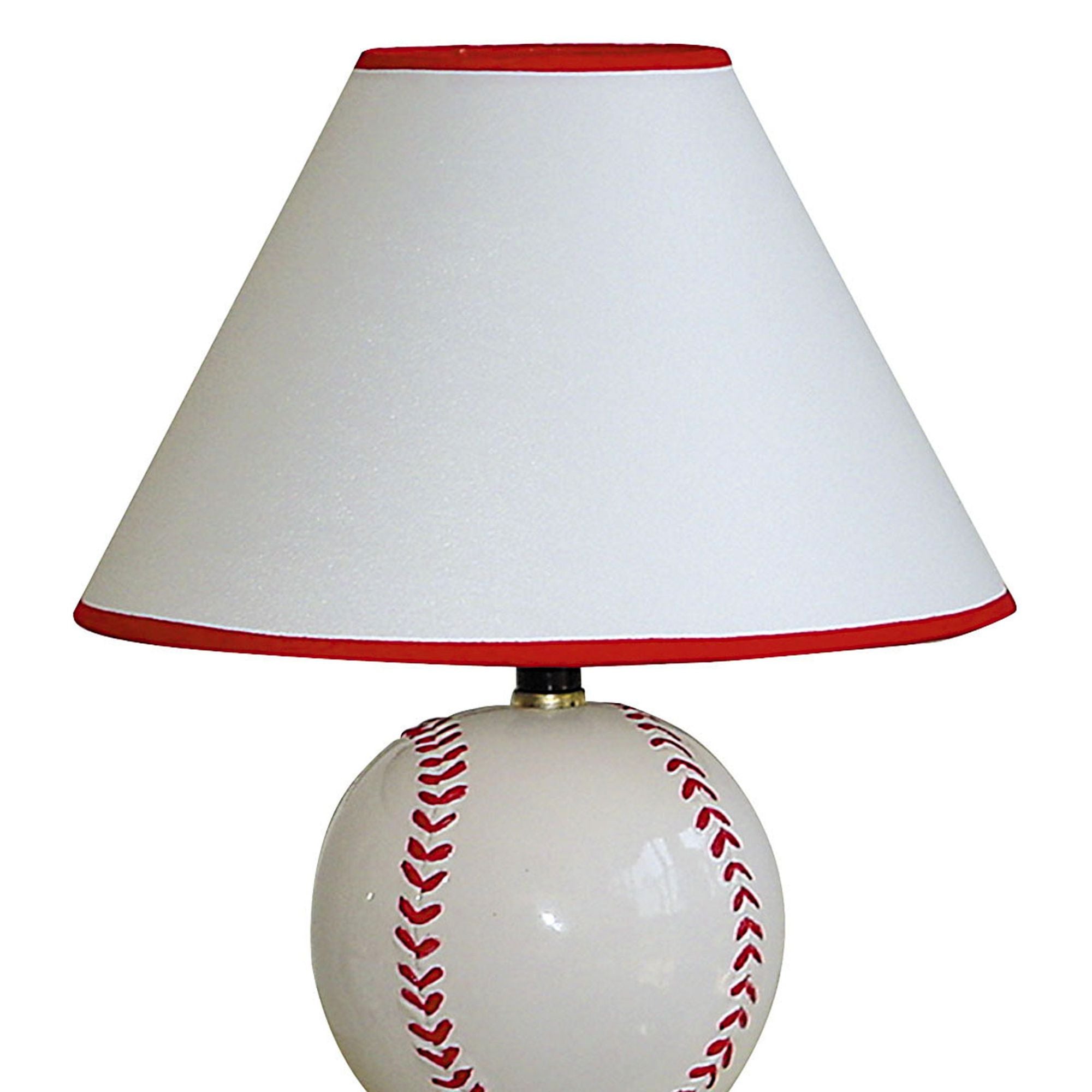 Bring sporty charm to any room with this ceramic baseball-shaped table lamp. Its hand-painted base and clean linen empire shade create a balanced look that suits a child's bedroom, a game room, or a casual bedside table. The lamp provides soft, focused light for reading while adding a playful decorative accent.