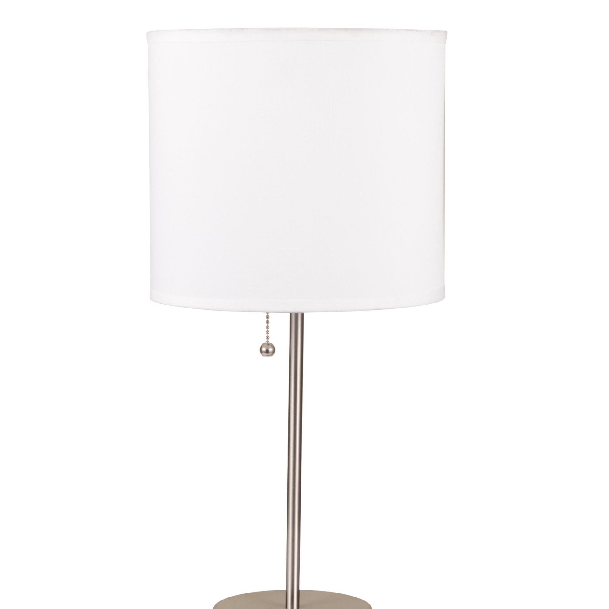 Bring a clean, modern accent to any room with this 19" metal table lamp. Its slim silver finish base and crisp white drum shade deliver understated elegance that complements contemporary, transitional, or minimalist décor. Ideal for bedside tables, desks, or living room side tables, the lamp provides soft, diffused light and simple pull-chain operation for everyday convenience.