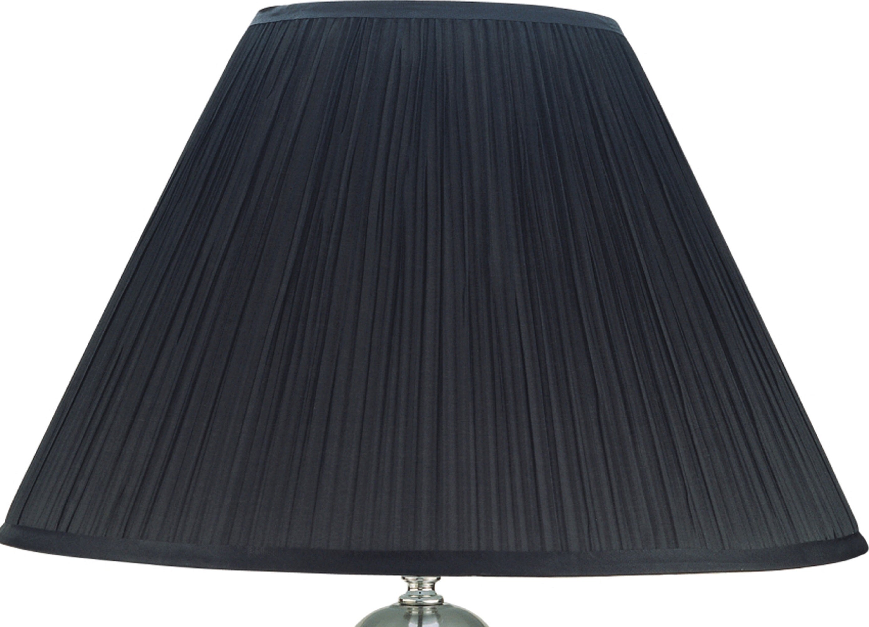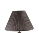 - Shade: Broad pleated fabric shade provides soft, diffused lighting suited for reading or ambient mood lighting.