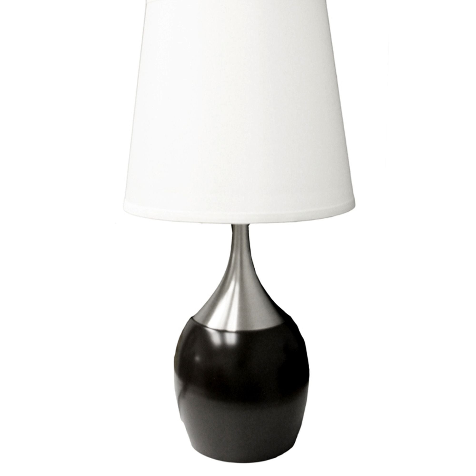 Add warm, adjustable lighting and modern simplicity to your bedroom or living room with this elegant metal touch table lamp. Its clean lines, espresso-finished base and crisp white shade create a versatile look that complements contemporary and transitional decor. The convenient touch-control lets you turn the lamp on and off or adjust brightness with a simple tap, making it ideal for bedside, end table, or accent lighting.