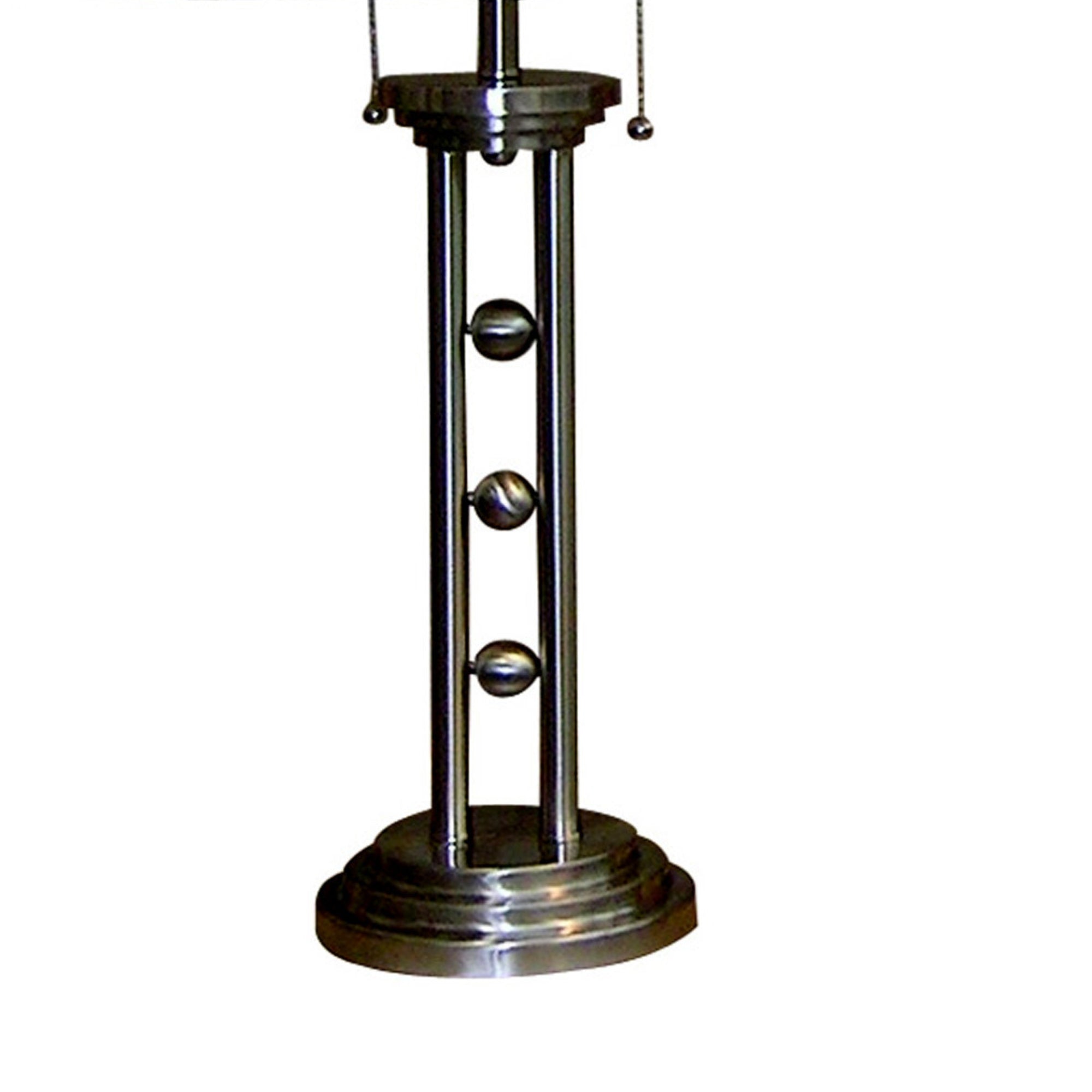 - Modern and metallic, this steel lamp is perfect for those sophisticated rooms. Adds a sense of professionalism and allure with its sleek metallic finish, complemented by its soft white shades.