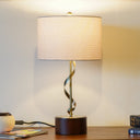 Enhance your bedroom or study with a sculptural, warm-toned table lamp that balances modern artistry and everyday function. This lamp combines a solid wood base with a twisted metal stem and a soft linen shade to provide comfortable, diffused lighting ideal for reading, bedside use, or accent lighting in living spaces.