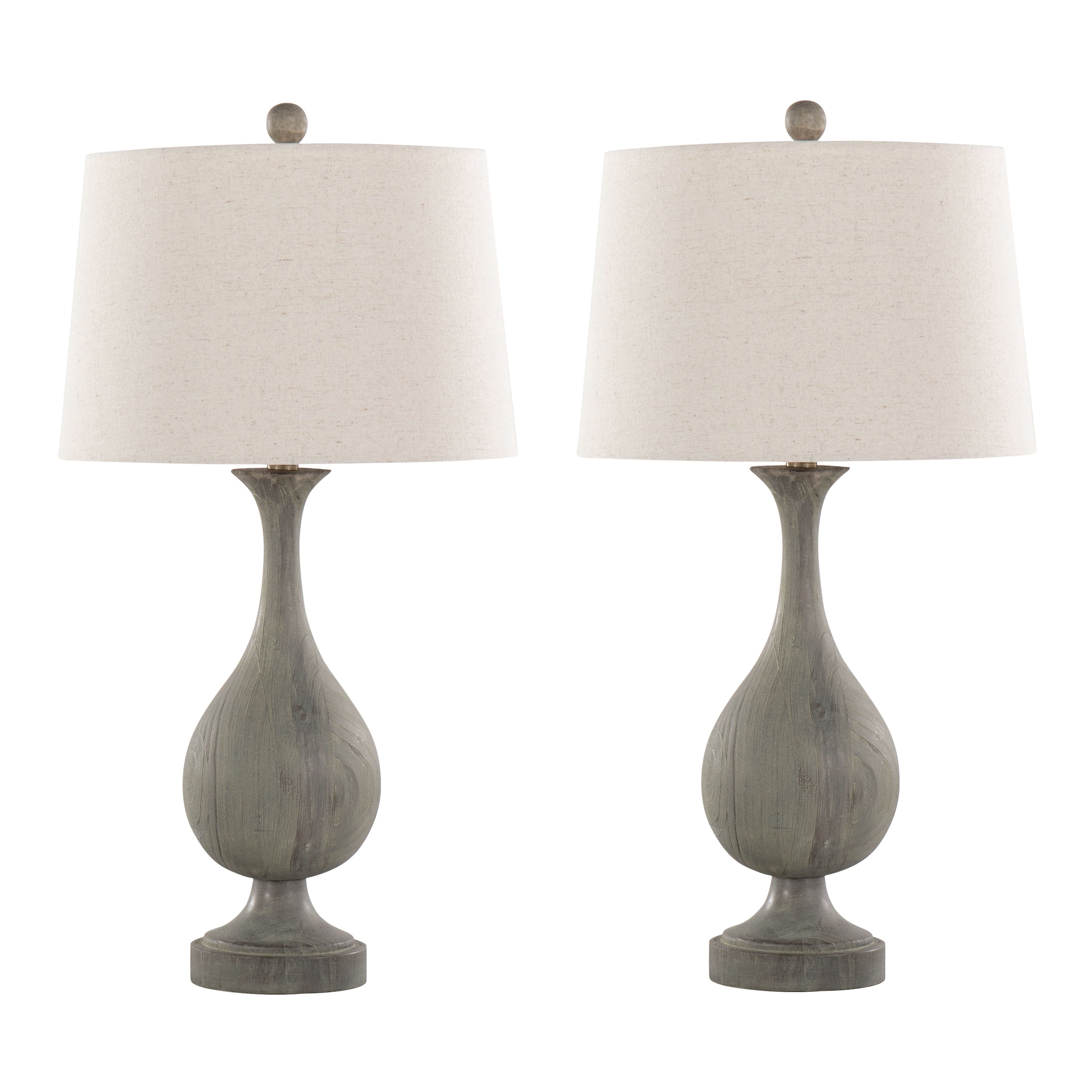 - Add a rustic design element to your space with the Cipolla Table Lamp from Grandview Gallery by LumiSource. This polyresin lamp features a tapered linen drum shade and faux wood design and showcases a teardrop body with an hourglass stem. Whether resting on your nightstands, set on side tables in the den, or tucked into your favorite reading nook, this set of lamps adds a touch of warmth to any space.