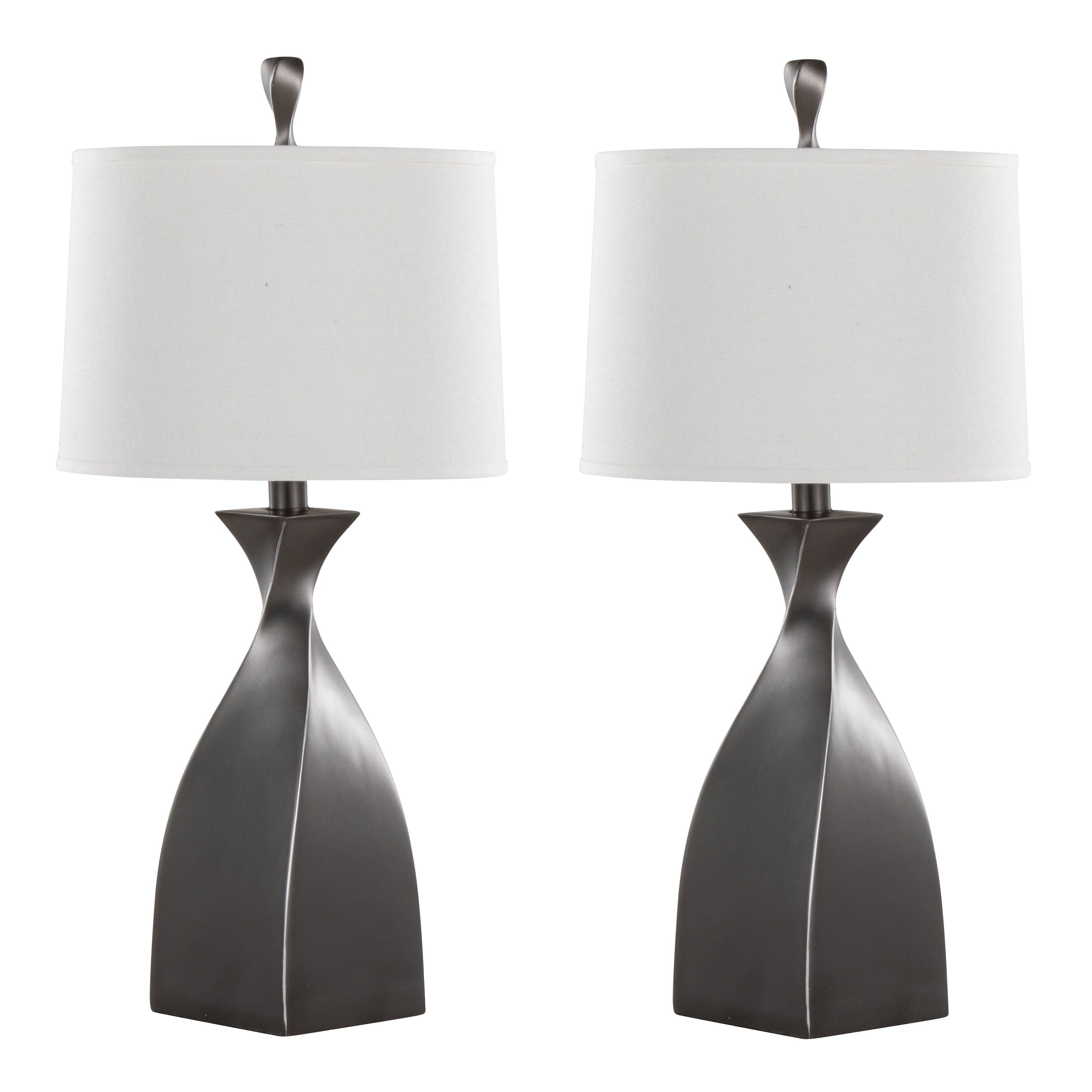 - Light up your living room or hallway in elegant modern way with the Curvo Table Lamp from Grandview Gallery by LumiSource. The design features a block base that has a subtle twist design and is topped with a minimalistic linen drum shade. Whether resting on your nightstands, set on side tables in the den or tucked into your favorite reading nook, these lamps are the simplistic, chic solution to your lighting needs.