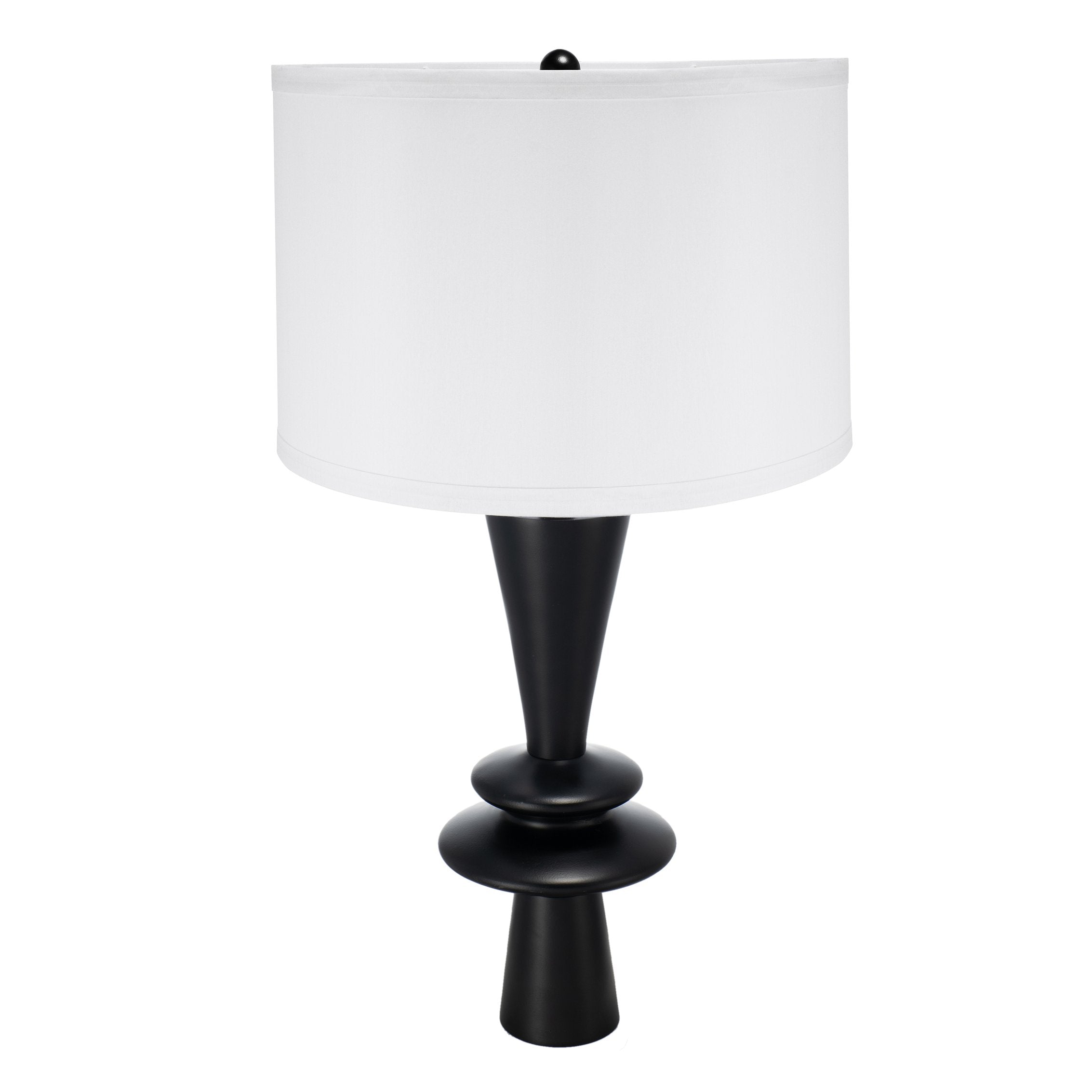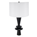 Bring modern sculptural style to your space with this sleek black aluminum table lamp. Its layered disc accents and clean white fabric shade create a striking focal point that complements contemporary, transitional, and minimalist interiors. Ideal for bedside lighting, study desks, or end tables, the lamp pairs artistic form with functional illumination.
