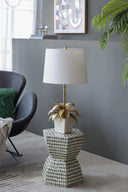 Add a touch of modern-preppy elegance to any room with this sculptural table lamp. Polished brass tones and reeded bamboo detailing create a warm, stylish focal point, while the clean-lined drum shade provides balanced, soft illumination—perfect for living rooms, bedrooms, or entryways seeking a chic, on-trend accent.