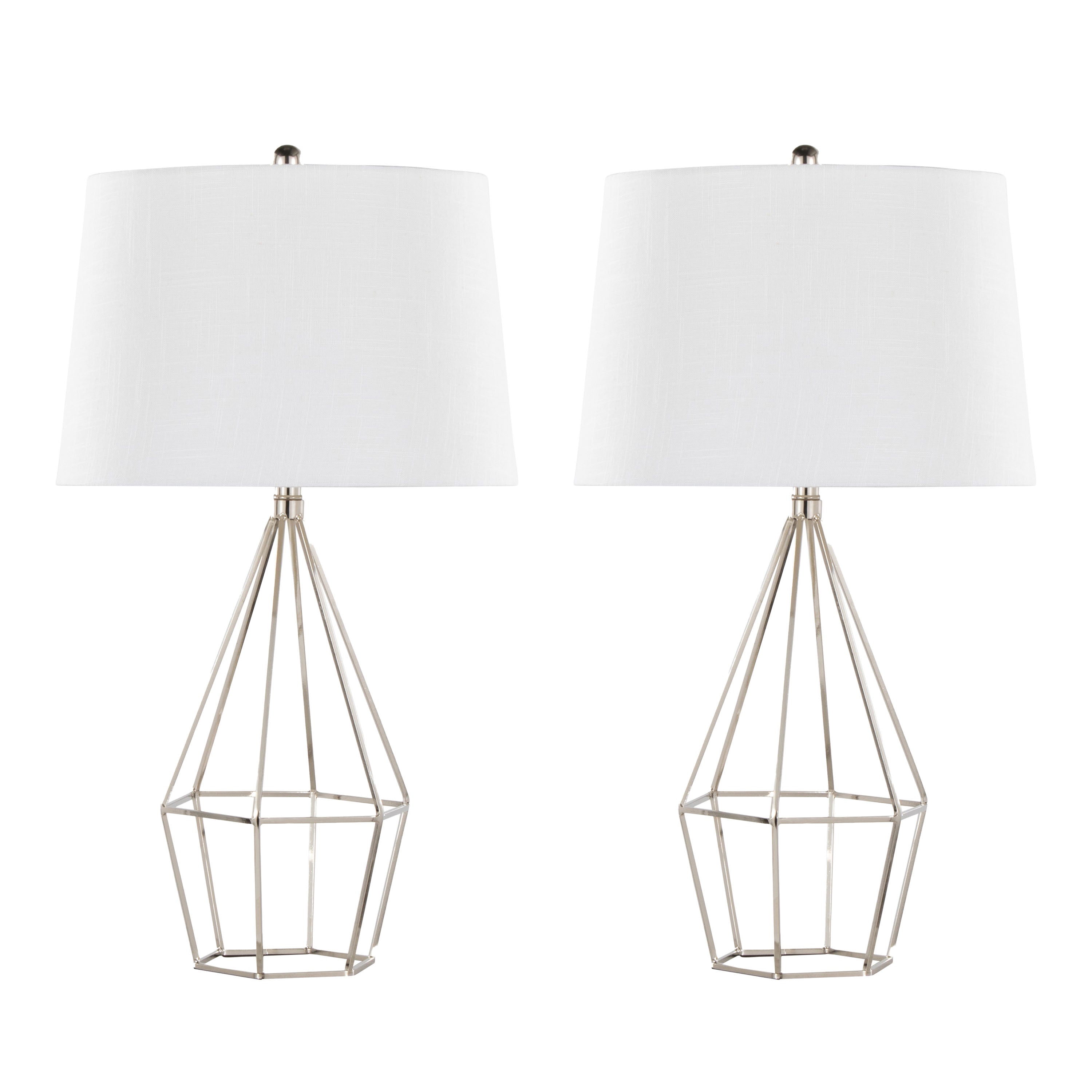 Bring modern elegance to your living space with this coordinated set of two Diana table lamps. Featuring a sleek polished nickel base and a black satin (linen-look) empire shade, these lamps blend contemporary form with functional lighting—perfect for nightstands, end tables, or reading nooks. Clean tapered lines and a compact footprint make them versatile accents that elevate both traditional and modern interiors.