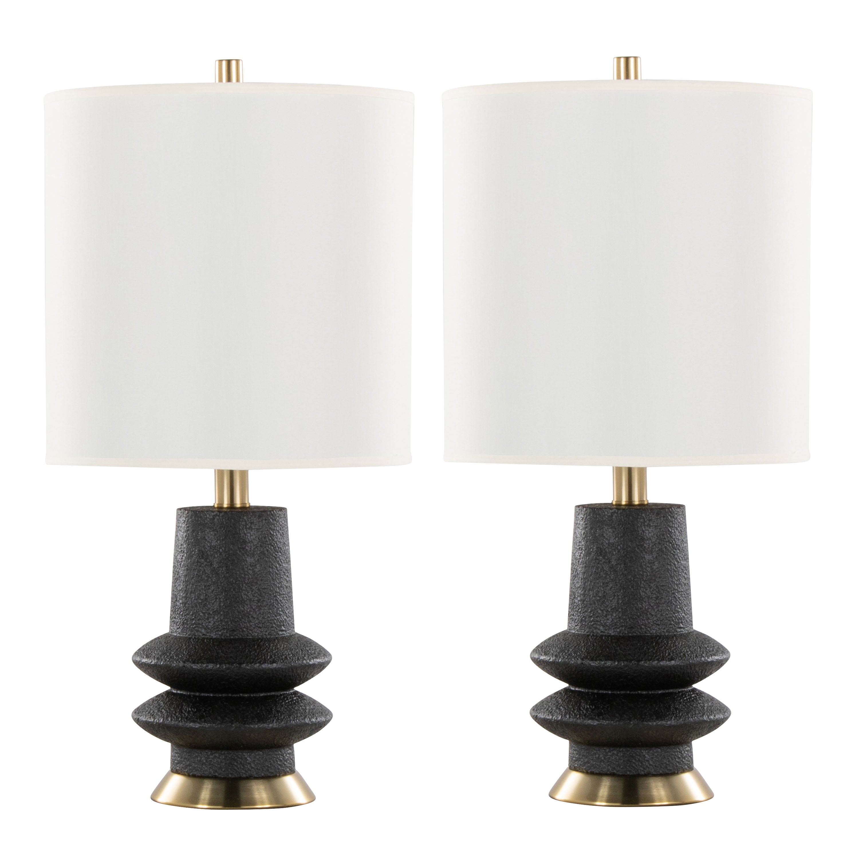Add contemporary sophistication to any room with the Lloyd table lamp set. These matching lamps pair a sanded matte black polyresin base with modern brass accents and a crisp white linen drum shade to deliver a warm, layered light that complements modern and transitional interiors. Ideal for living rooms, bedrooms, or entry tables, the Lloyd lamps provide polished style and practical illumination in a coordinated two-piece set.