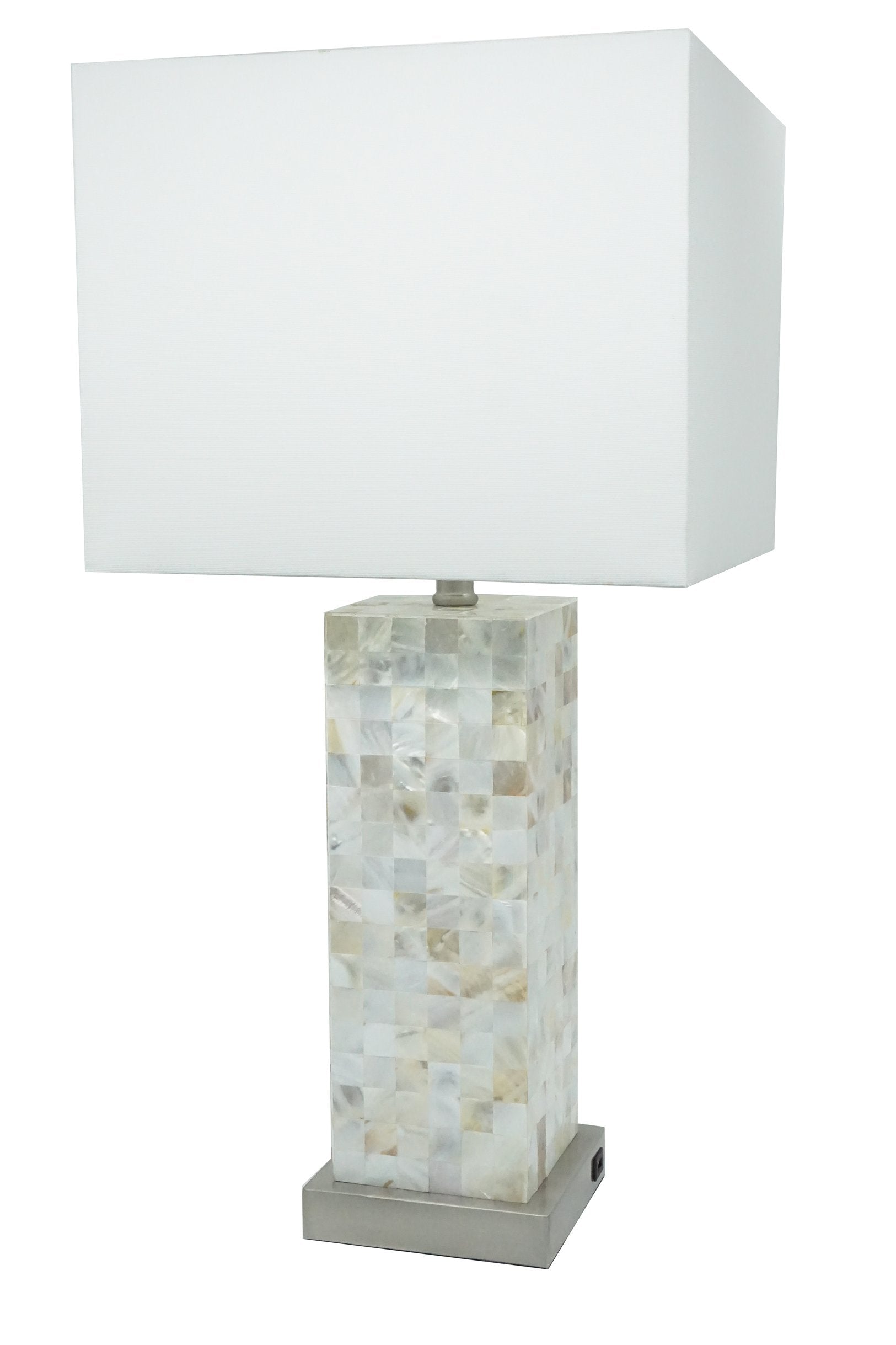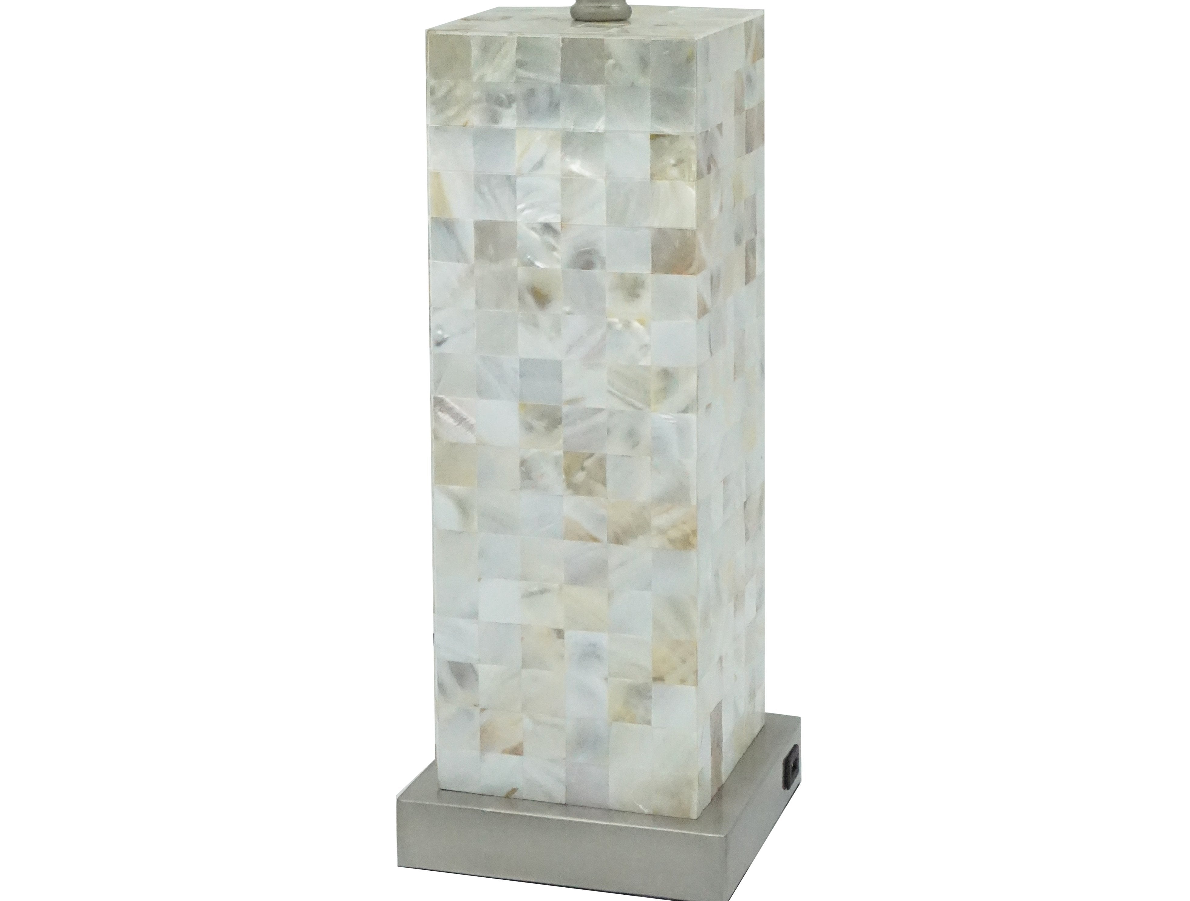 - Key Finish & Materials: White shade, chrome-finished base, decorative mother-of-pearl mosaic body for a subtle iridescent effect