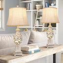 Bring warm, versatile lighting to your bedroom or living room with this rustic farmhouse set of two bedside lamps. Each lamp pairs a soft linen shade with a washed-white metal base and decorative scrollwork, delivering a cozy, eye-friendly glow and flexible illumination modes for reading, relaxing, or guiding late-night trips to the bathroom.