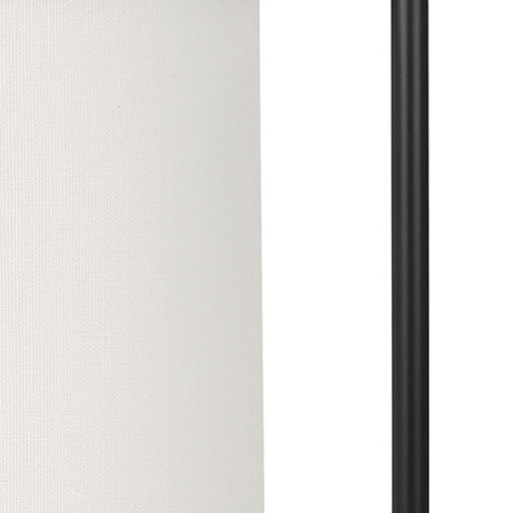 - Modern and stylish table lamp with a black metal base and an ivory shade.