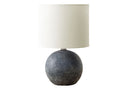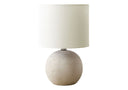 - This 16"h table lamp features a sleek grey concrete base paired with a soft ivory fabric shade, making it a stylish and fashionable addition to any contemporary living room, bedroom, or office decor.