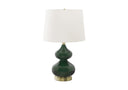 - Add a fashionable touch to any room with this stylish and trendy 24"H double-gourd table lamp in a stunning green glass with a silver metal base and a chic cone shaped ivory fabric shade, topped with a round silver finial.