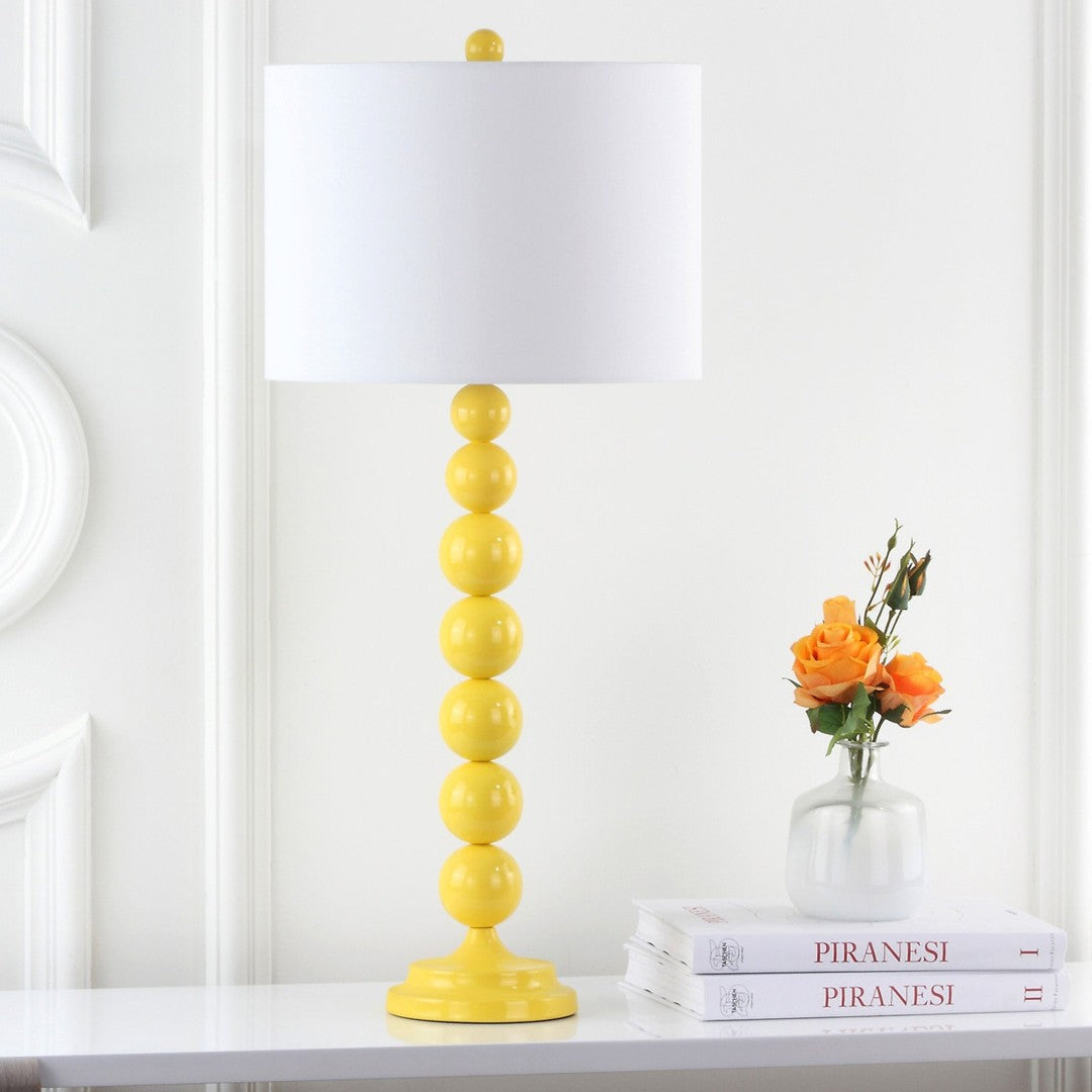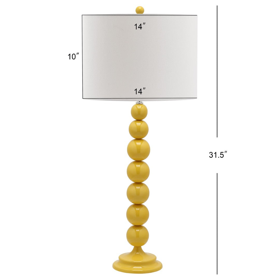 Bring bold color and modern sculptural style to your room with this 31.5-inch yellow metal ball lamp topped by a cream hardback linen shade. Its vibrant finish and simple silhouette create an immediate focal point while providing warm, ambient light ideal for living rooms, bedrooms, home offices, or reading nooks. Built on a stable metal base and finished with quality materials, this lamp blends contemporary design with everyday function.