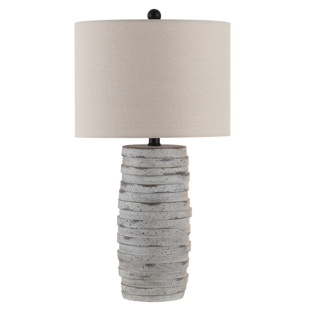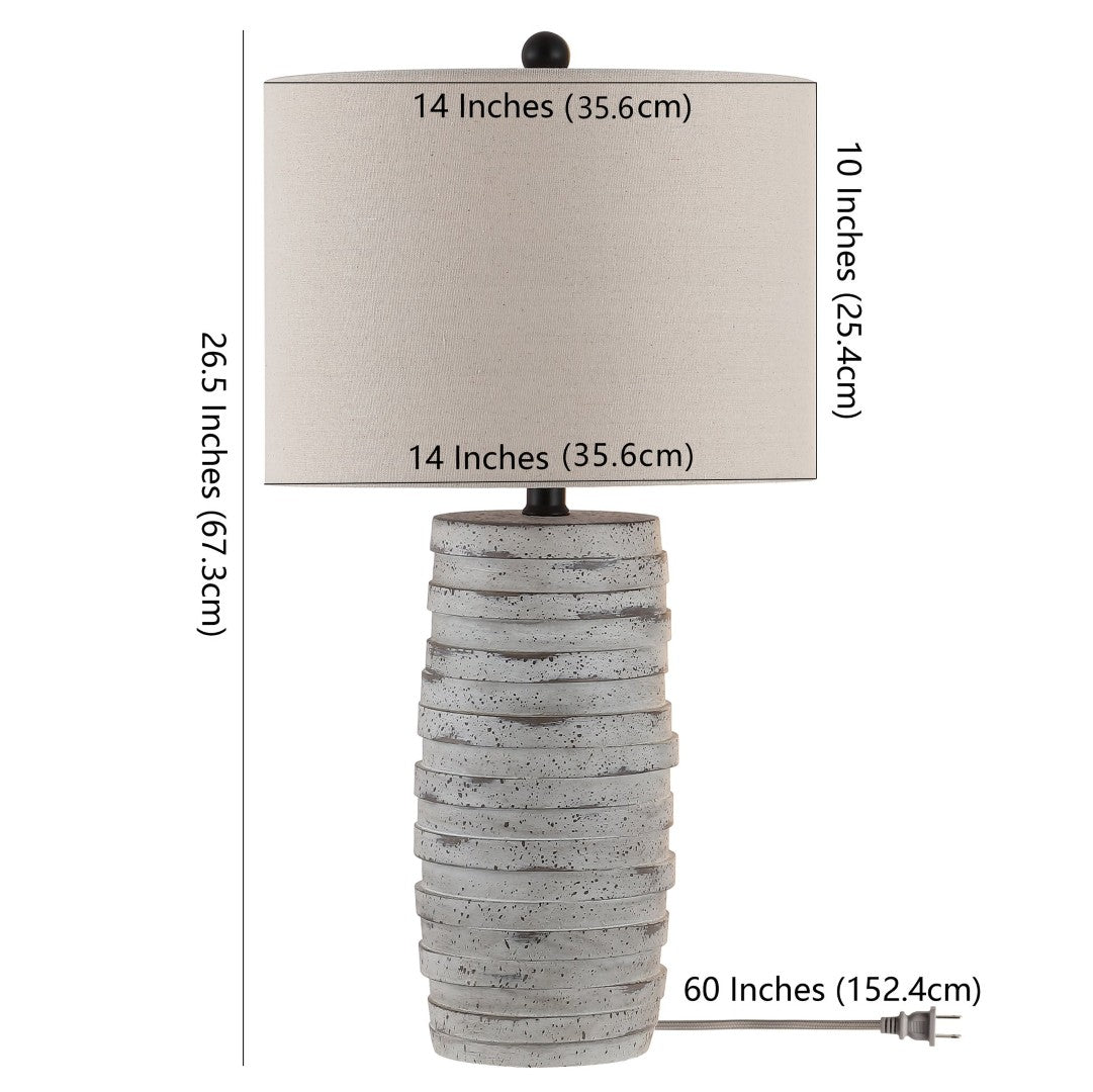 Add a refined, contemporary accent to your living space with the ALRON resin table lamp. Its soft grey finish and sculpted silhouette provide a calming focal point while delivering practical illumination for bedside tables, consoles, or reading nooks. Built with a textured resin body and a slender iron neck, this lamp combines tactile detail and structural strength for everyday use and long-lasting style.