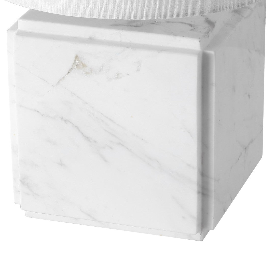 - Finish: White marble with matching white shade and coordinating iron base
