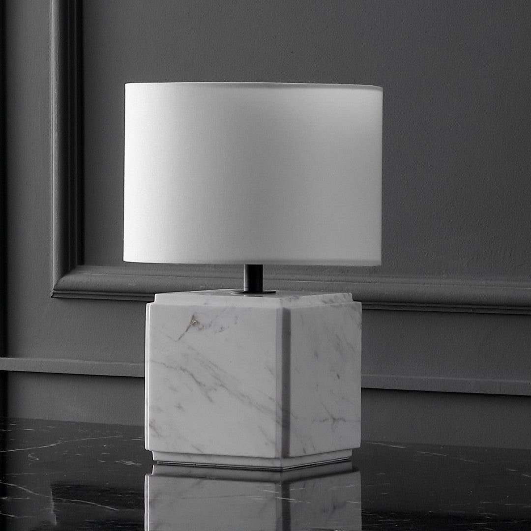 - Materials: Italian marble body, iron base, fabric shade for gentle light diffusion