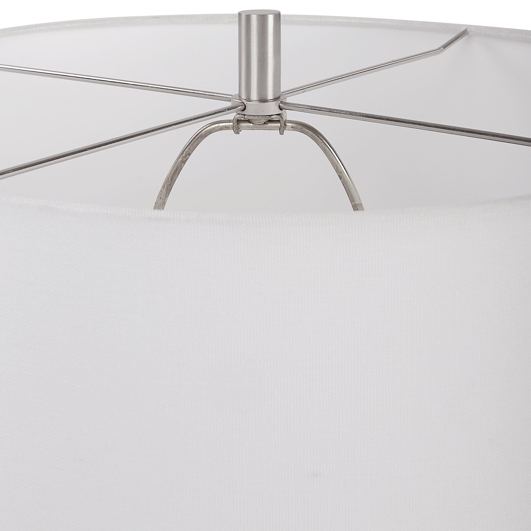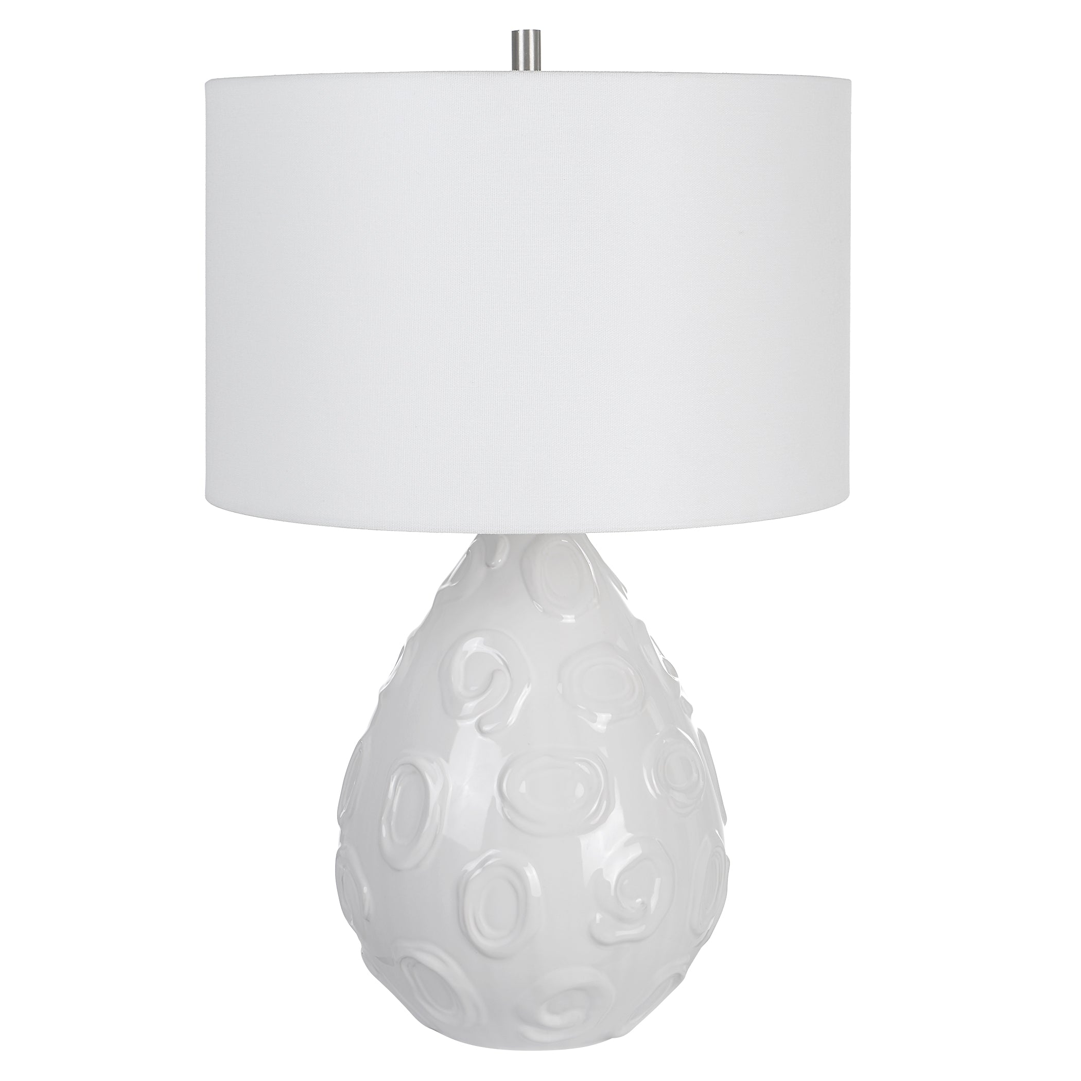 - Finish/Frame Description: Handcrafted From Ceramic, This Table Lamp Features A Clean White Glaze With Individually Applied Whimsical Loop Details, And Plated Brushed Nickel Accents.