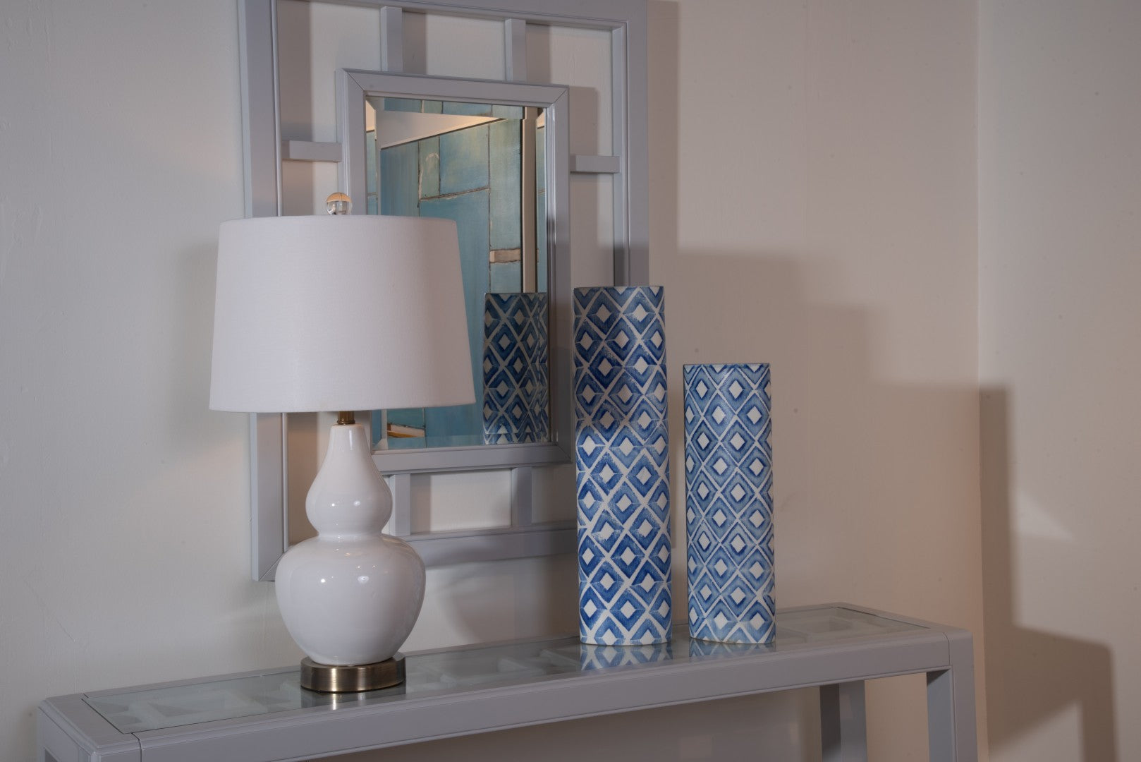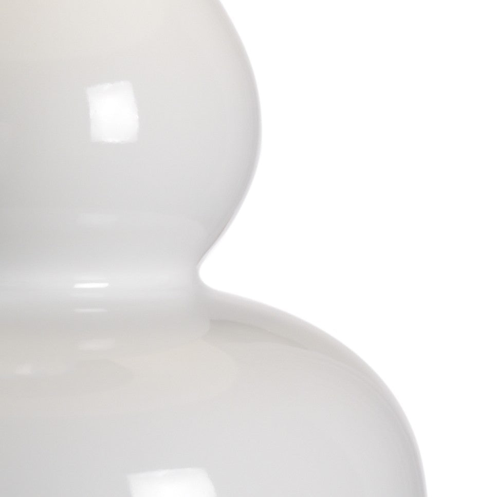 - Design: White ceramic gourd-shaped base with an antique brass mounting for a sophisticated, transitional look