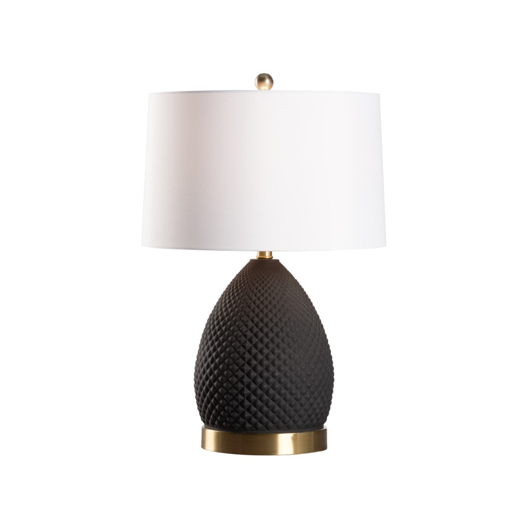 - Design: Sculptural black ceramic base with a textured diamond pattern for tactile visual interest.