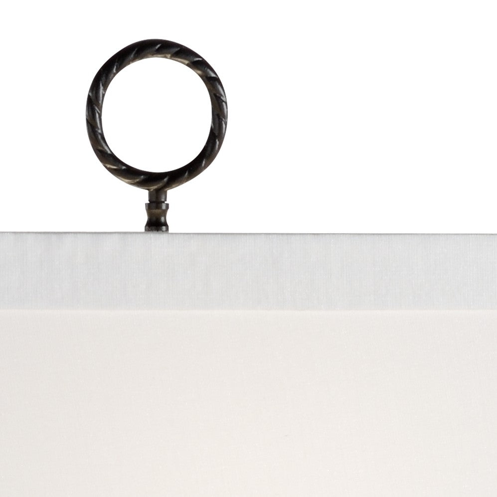 - Shade: Off-white rectangular shade topped with a circular finial for a finished look