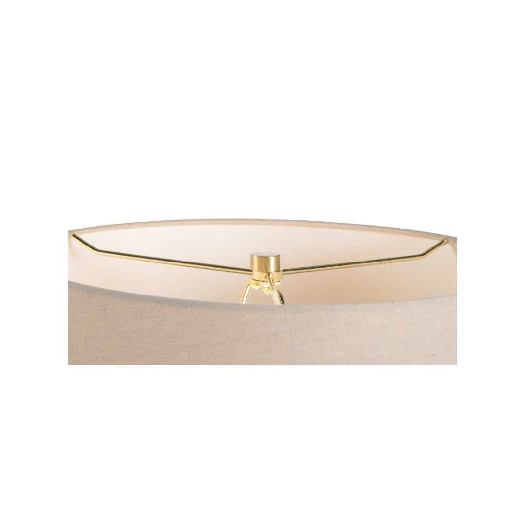 - Classic jar silhouette with a refined rolled-edge linen shade for soft, diffused lighting