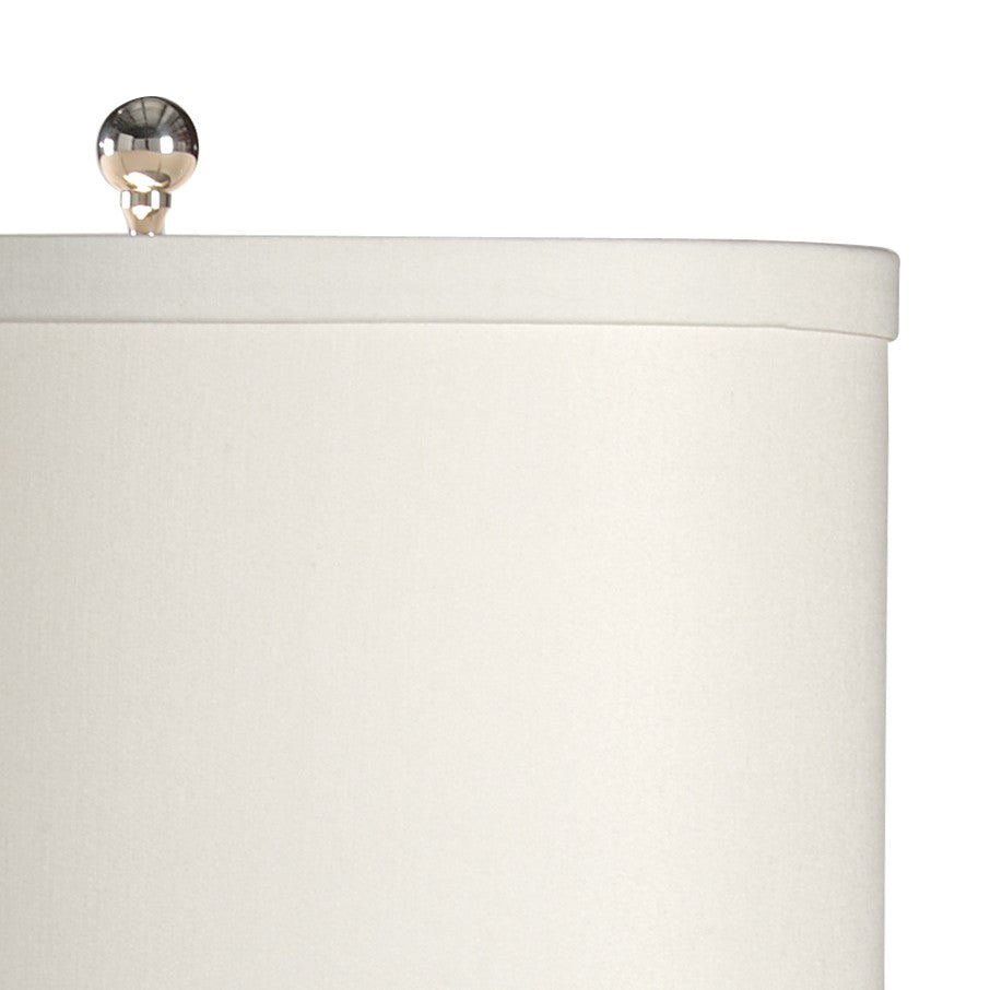 - Materials: Artisan blown glass body with polished nickel metal accents and an eggshell fabric drum shade