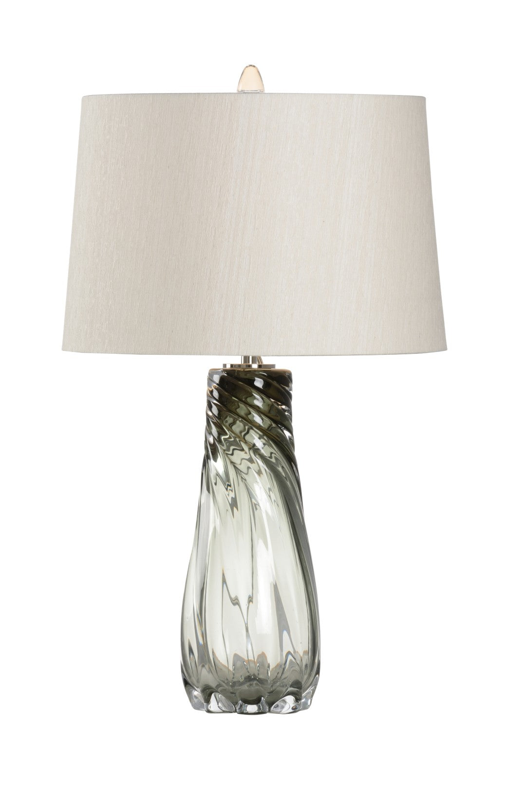 Add soft, sophisticated illumination to your bedroom or living area with a modern, hand-crafted table lamp that blends artful glasswork and refined textile details. The Norah Lamp’s gently twisted art glass creates a graceful sense of movement, while the cream raw silk drum shade and matching finial provide an elegant finishing touch—perfect for transitional and contemporary interiors.