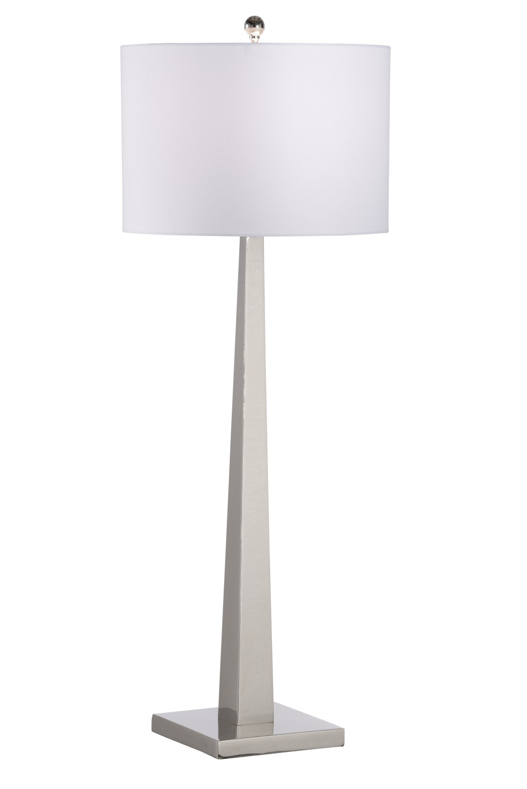Add timeless elegance and modern simplicity to any room with this transitional table lamp. The Obelisk of Montevideo Lamp pairs a sleek polished nickel base with a crisp white linen drum shade, delivering balanced illumination and refined style for foyers, bedrooms, living rooms, or office spaces. Its clean silhouette and reflective finish create visual interest while remaining versatile enough to complement contemporary and classic interiors.