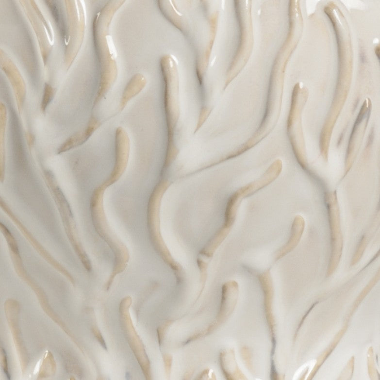 - Design: Coastal-inspired sculpted sea grass motif in ceramic with a neutral glaze for subtle texture and depth