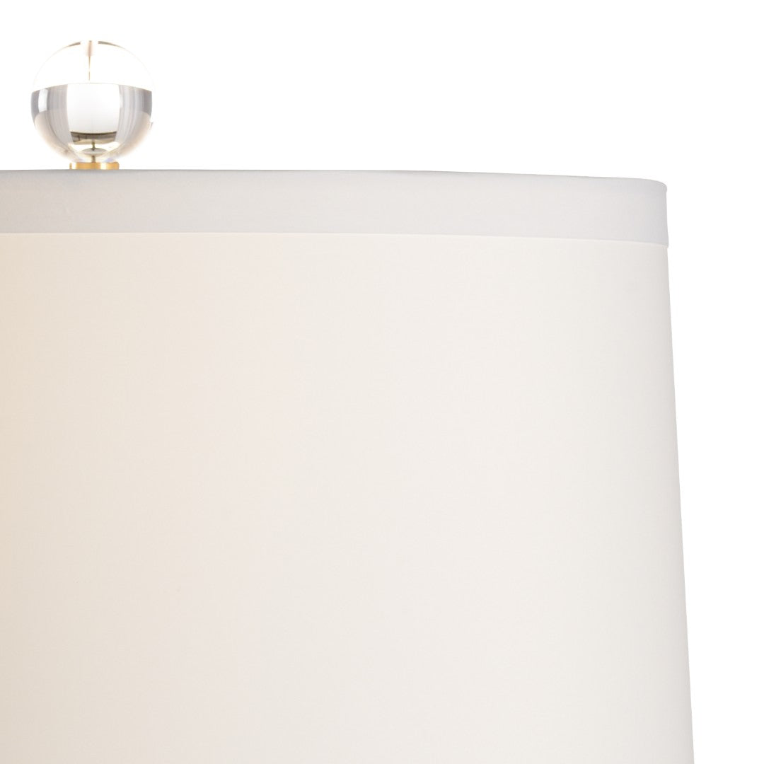 Bring a touch of exotic charm to any room with this gray Snow Leopard Lamp. The playful double-gourd ceramic base features a subtle animal-print decal and rests on a clear acrylic platform for a modern, airy look. Topped with an off-white tapered drum shade and matching finial, this lamp balances bold patterning with clean lines—perfect as an accent on a side table, nightstand, or entry console.