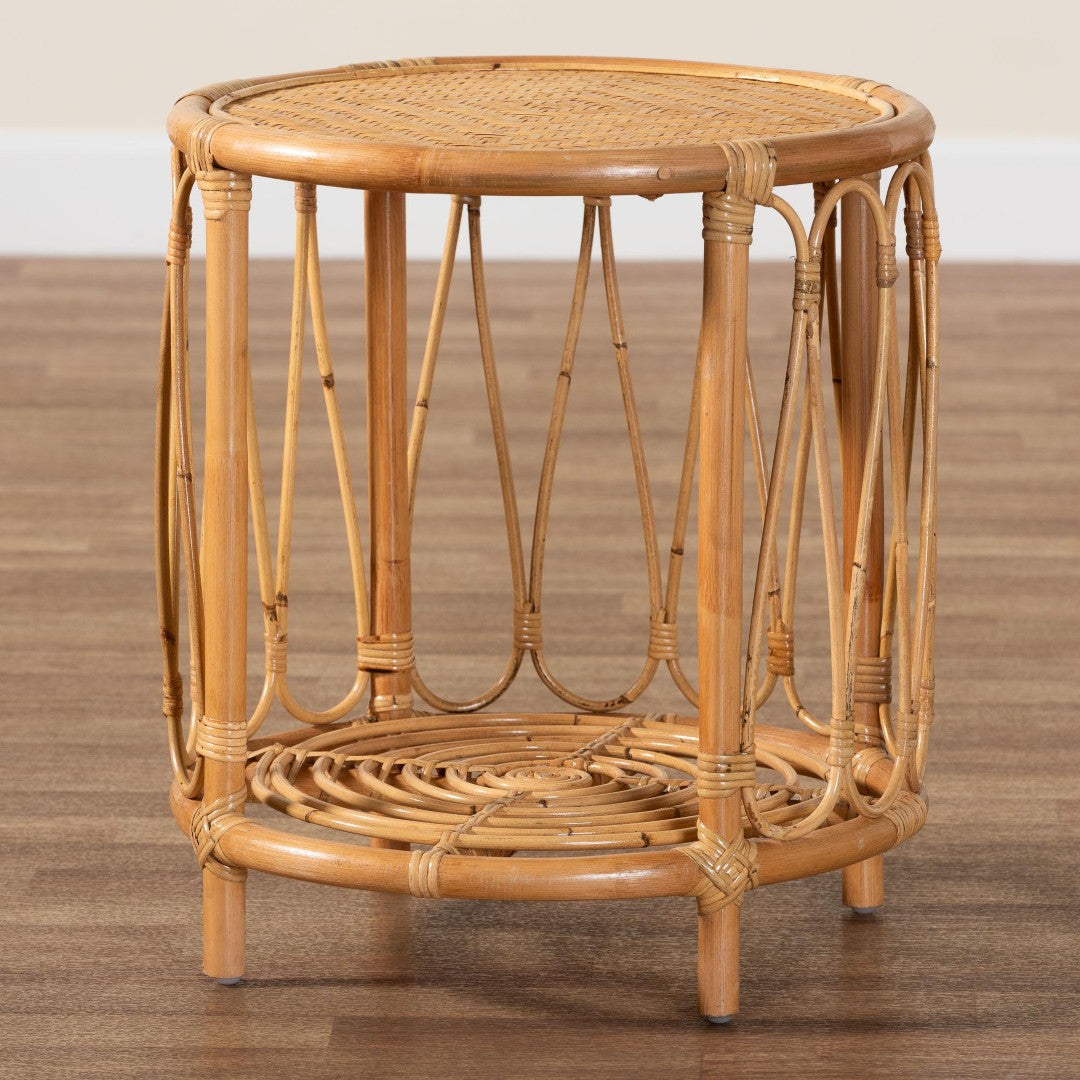 Bring warm, bohemian charm to any room with this handcrafted rattan end table. Artfully made in Indonesia, the piece blends rustic texture and geometric weaving to create a versatile accent that works as a side table, display shelf, or bedside companion. Lightweight yet sturdy, it arrives fully assembled and highlights natural variations that give each table its own character.