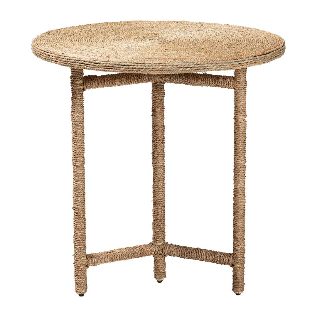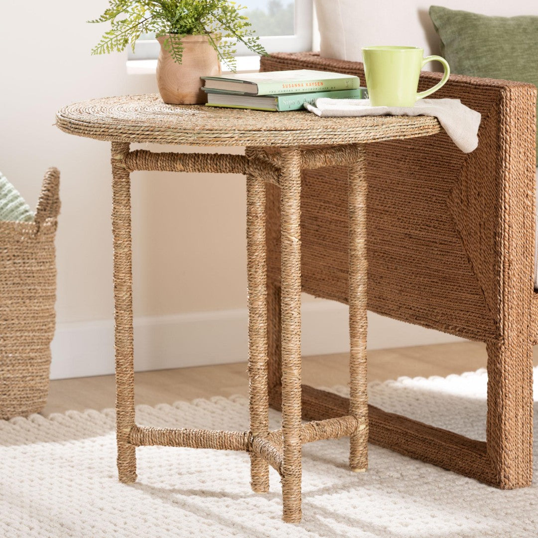 Introduce a touch of coastal boho charm with the Fumito handwoven seagrass end table—an artisanal accent piece that blends natural texture with clean, minimalist lines. Handcrafted in Vietnam, this round side table pairs a sturdy metal frame with intricately woven seagrass for a warm, organic look that complements living rooms, sun rooms, and relaxed modern interiors. The spiral tabletop pattern and wrapped frame create visual interest while the airy base keeps the silhouette light and versatile.