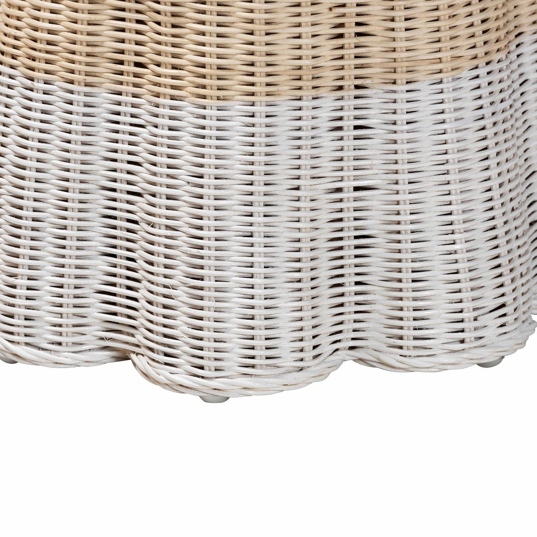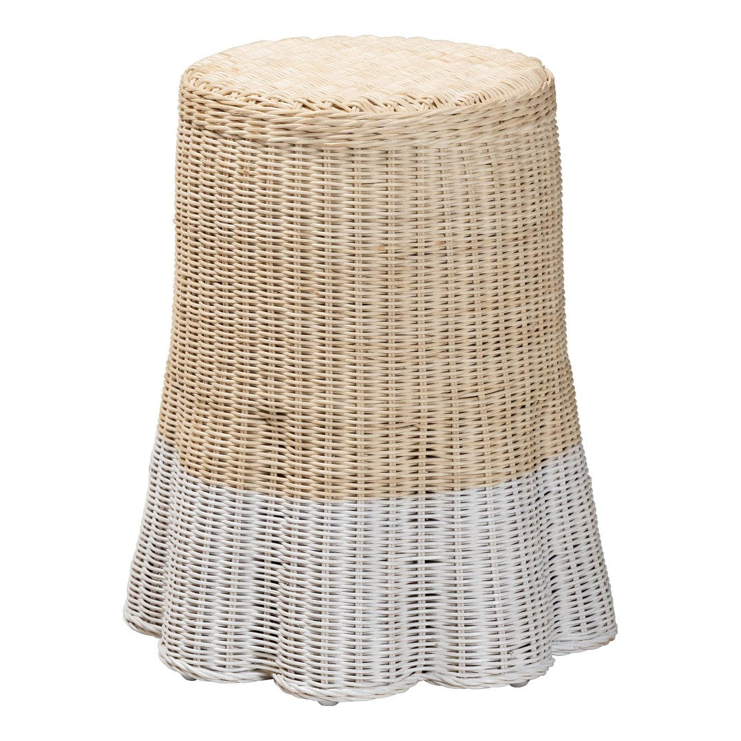 Elevate your living space with a handcrafted accent that blends coastal charm and boho sophistication. This handwoven rattan end table brings natural texture, subtle two-tone coloring, and refined detailing—like a scalloped base and braided trim—to create a versatile focal point for sofas, bedsides, or reading nooks. Fully assembled and thoughtfully finished, it pairs effortlessly with both relaxed and curated interiors while protecting floors with non-marking feet.